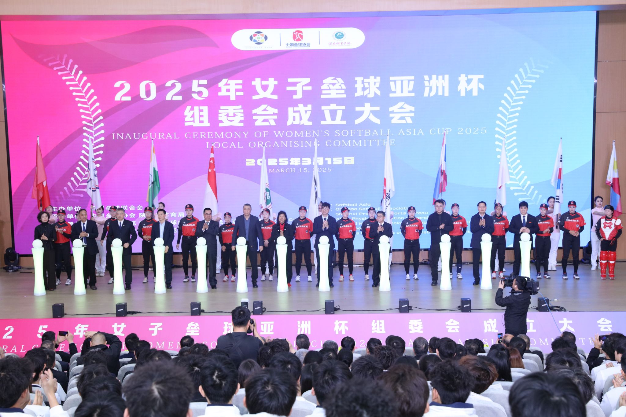 参会领导共同推杆,完成2025年女子垒球亚洲杯组委会启动仪式