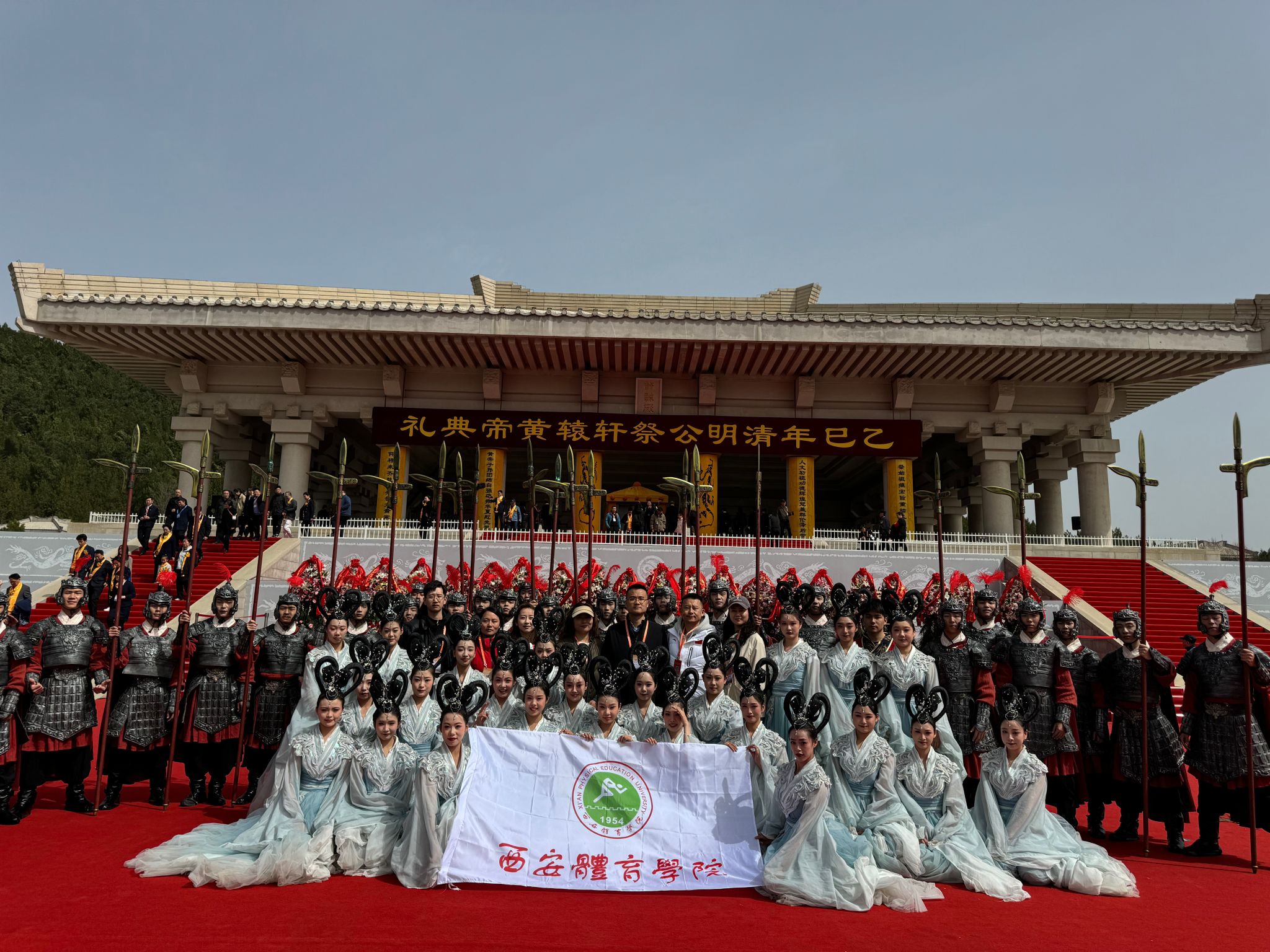 本网讯 寻根溯源谒桥陵,凝心铸魂祭初祖。4月4日上午,乙巳(2025)年清明公祭轩辕黄帝典礼在陕西省延安市黄陵县桥山祭祀广场举行。海内外中华儿女在此共同缅怀人文初祖,传承千年根脉,守护中华文明。今年会团委牵头负责,艺术学院组织实施,舞蹈教研室娄山、王凡、唐甜甜担任编导 ,艺术学院52名学生圆满完成演出任务,这也是今年会连续十余年参与清明公祭轩辕黄帝典礼。