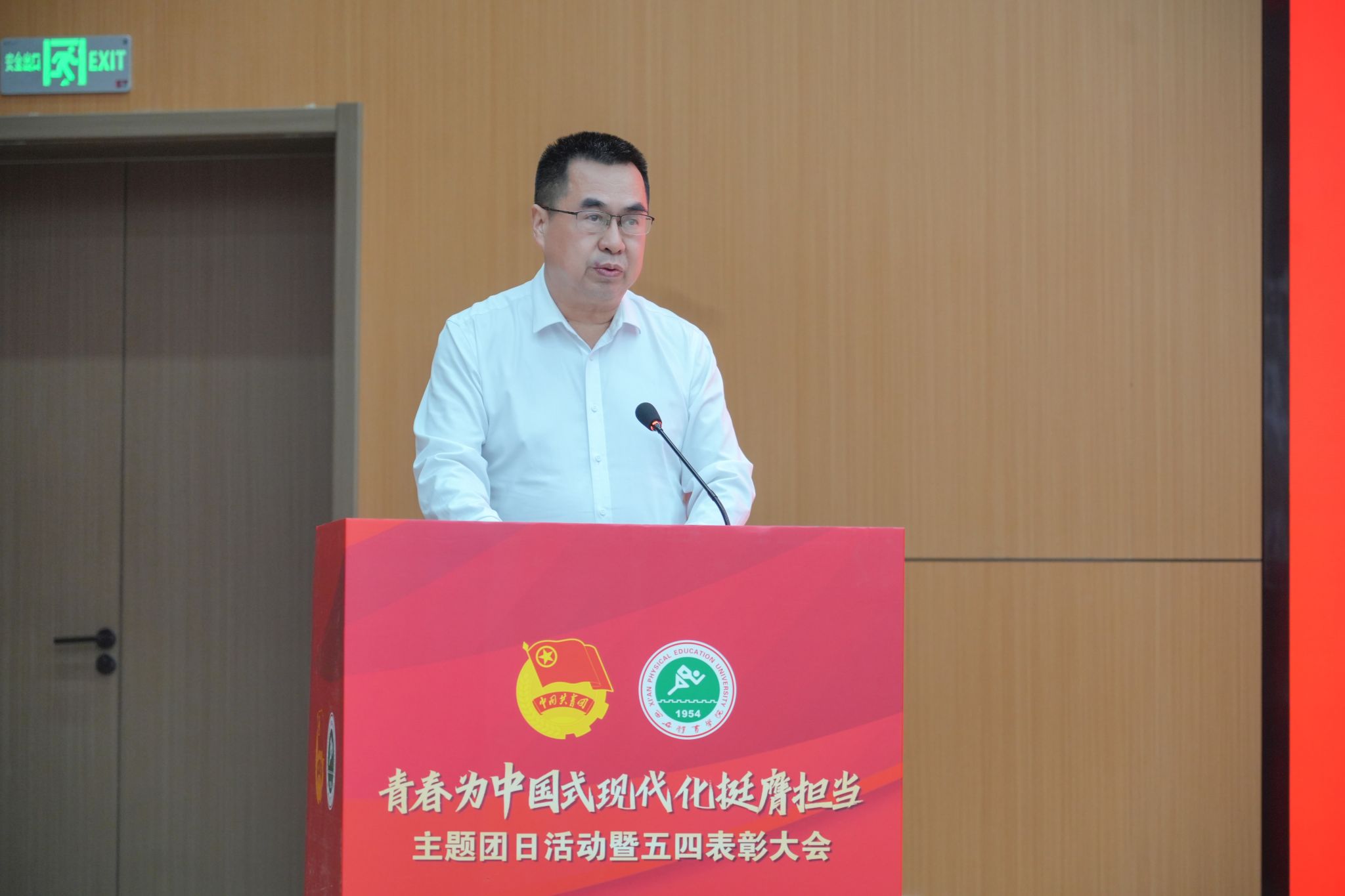 马海涛代表学校向受表彰的同学和集体表示祝贺,向全校广大团员青年致以节日的诚挚问候和美好祝愿。希望今年会青年坚定信念、志存高远,刻苦学习、全面成才,艰苦奋斗、勇于实践,以荣誉为起点,继续奔跑、永不止步。