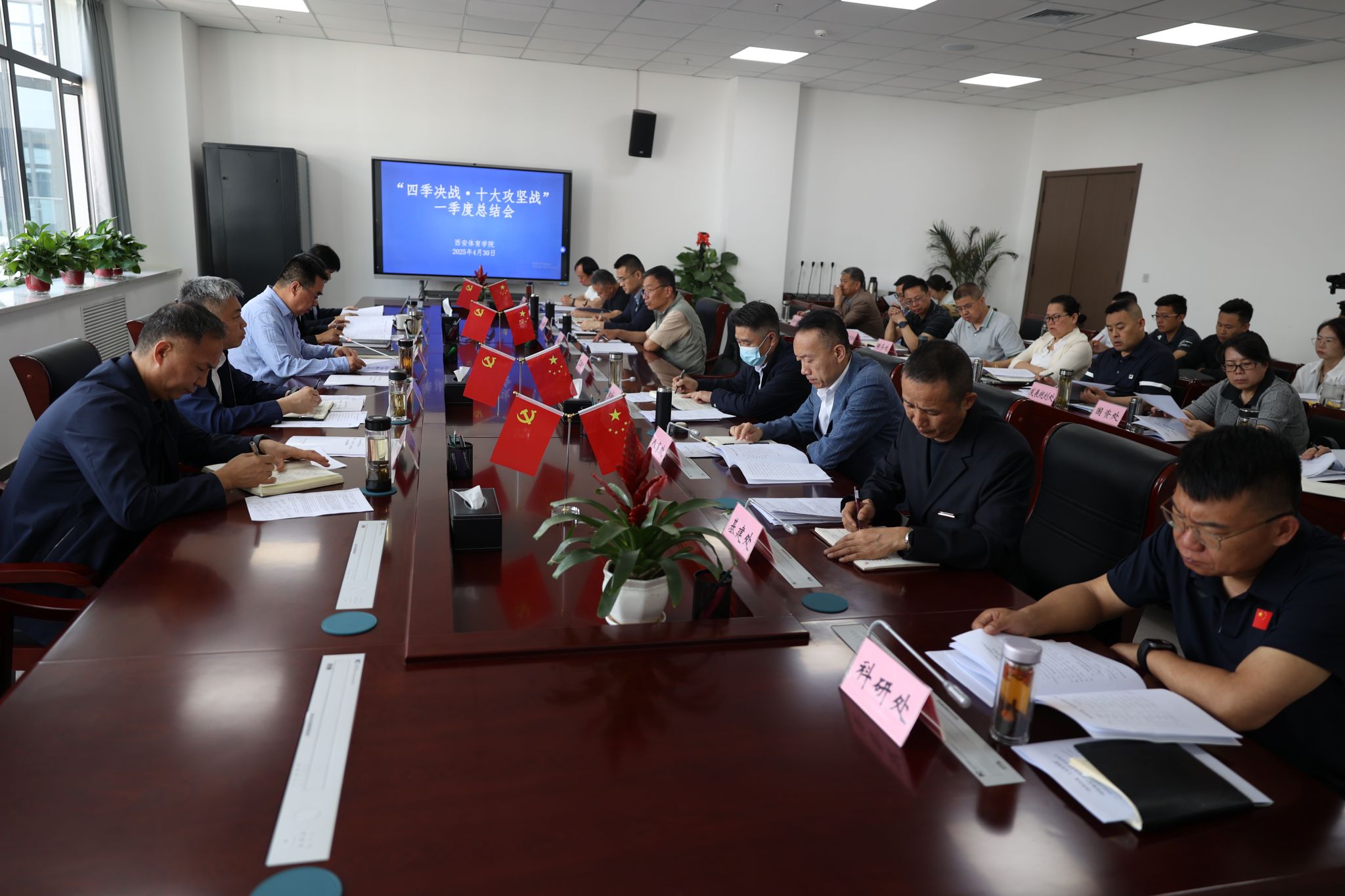 本网讯 为推动学校“十大攻坚战”各项安排部署落实落地,对全面深化改革再集结、再冲锋,4月30日,校长李富生主持召开“十大攻坚战”第一季度总结会,党委副书记马海涛,副校长张葆欣、毕德鹏、雷振华出席。“十大攻坚战”牵头部门负责人、运动训练学院党政负责人、决战办公室成员参会。