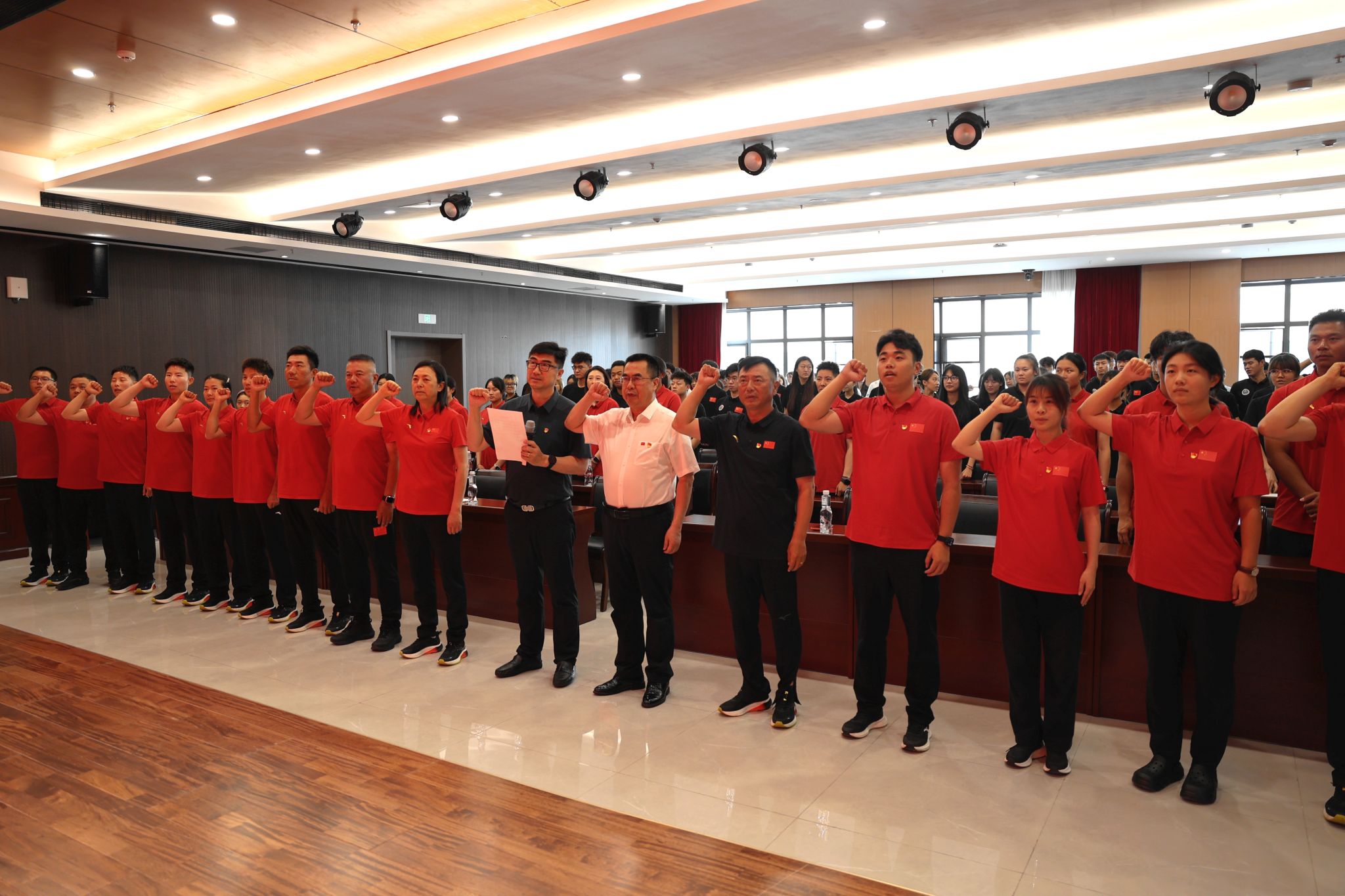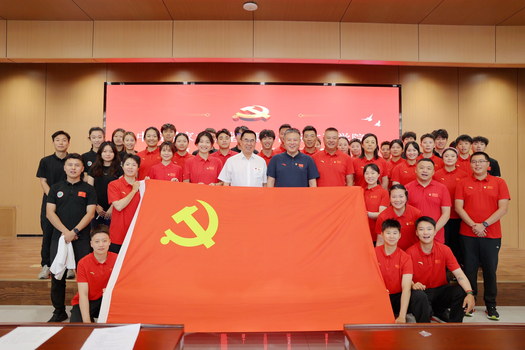 在与今年会学生共同开展的主题党日活动中,陈旭带领国家队党员和在座学生党员面向党旗,重温入党誓词。李富生出席主题党日活动,郑璐主持。