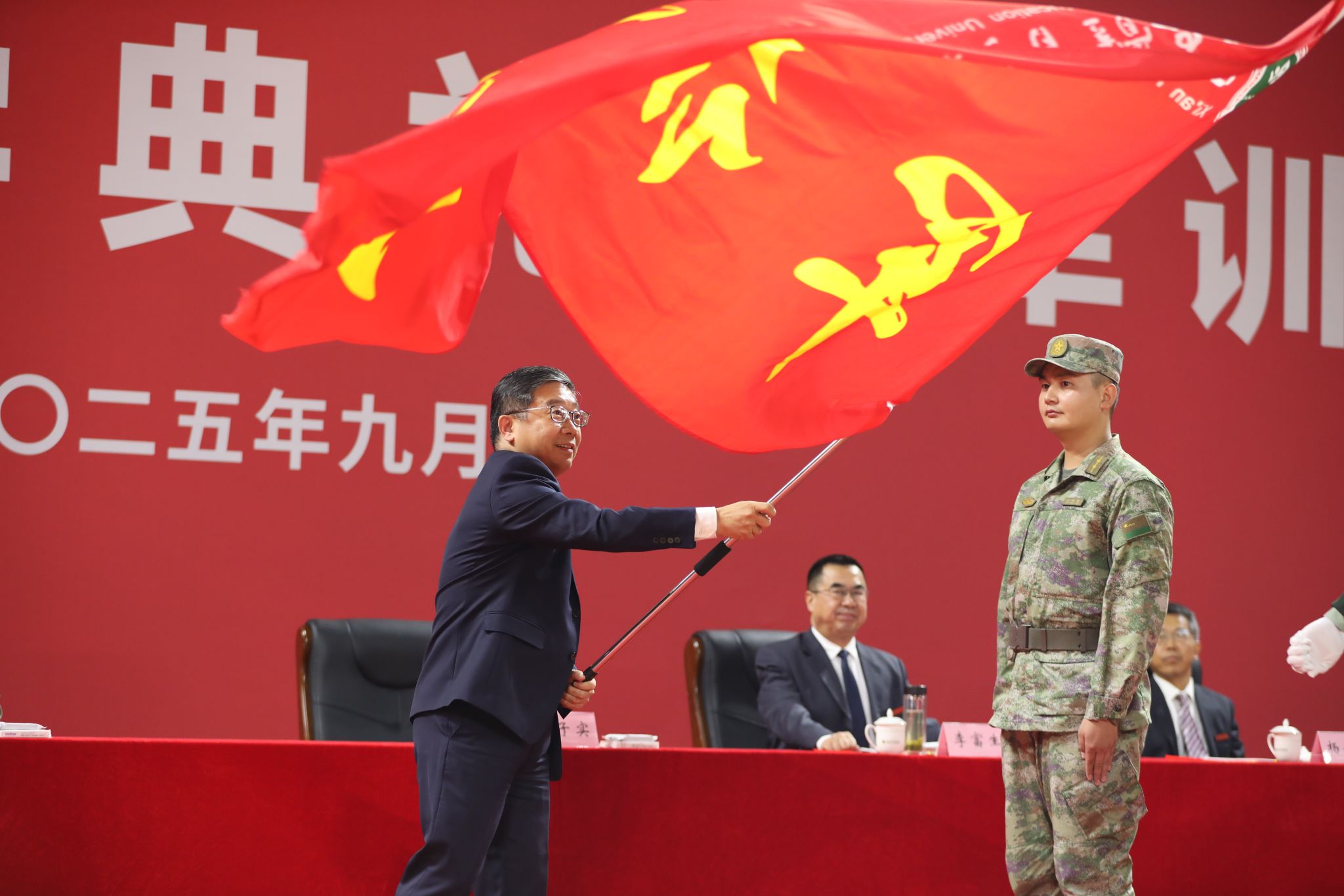 本网讯 9月8日,2025级新生开学典礼暨军训动员大会在鄠邑校区手球馆举行。校领导,承训部队官兵,各职能部门及二级学院负责人,教师代表,高年级学生代表与全体2025级新生齐聚一堂,共同见证这一庄严而热烈的时刻。大会由党委副书记马海涛主持。