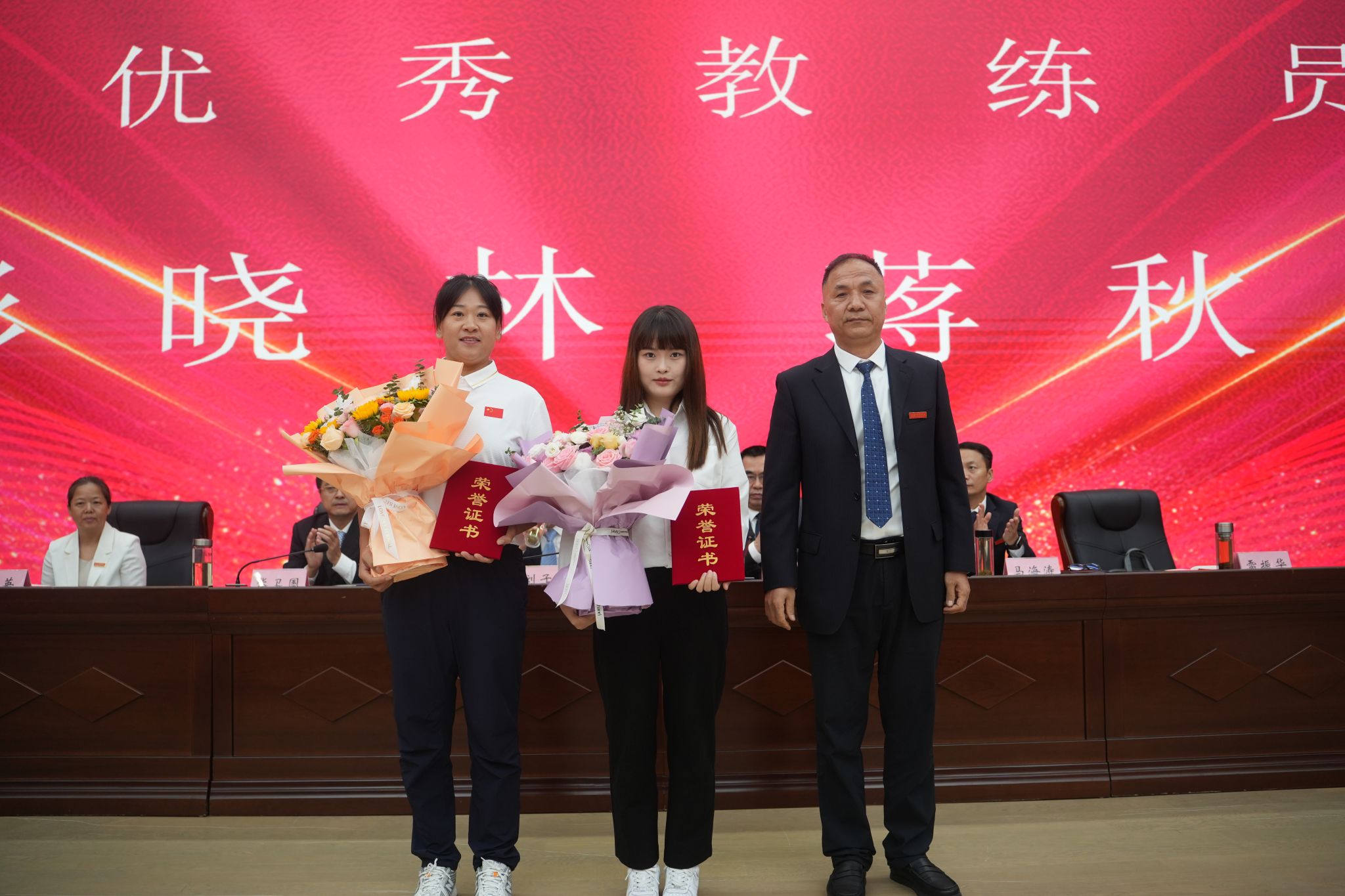 副校长雷振华为获得“校级先进工作者-优秀教练员”荣誉的教练员颁奖