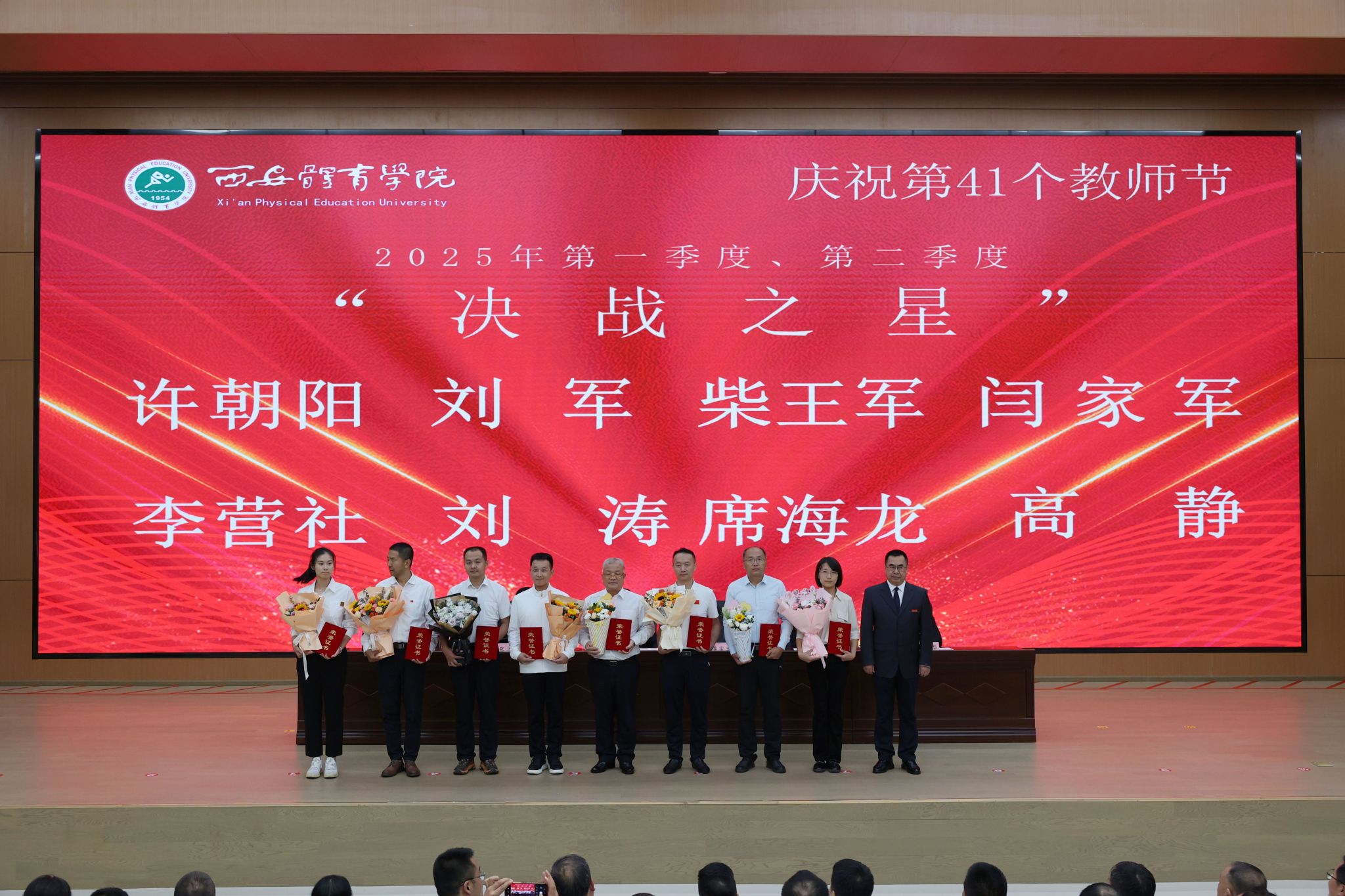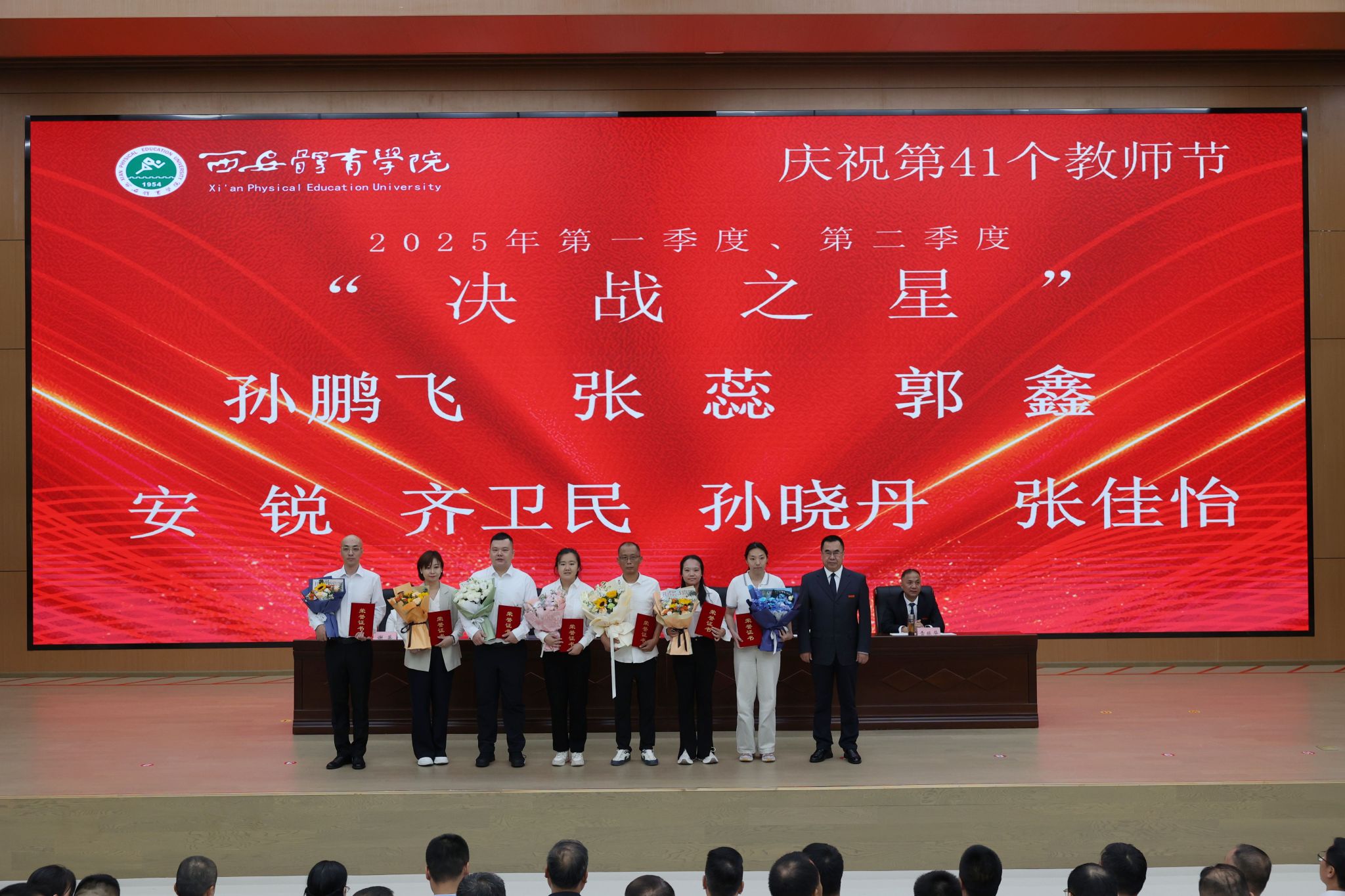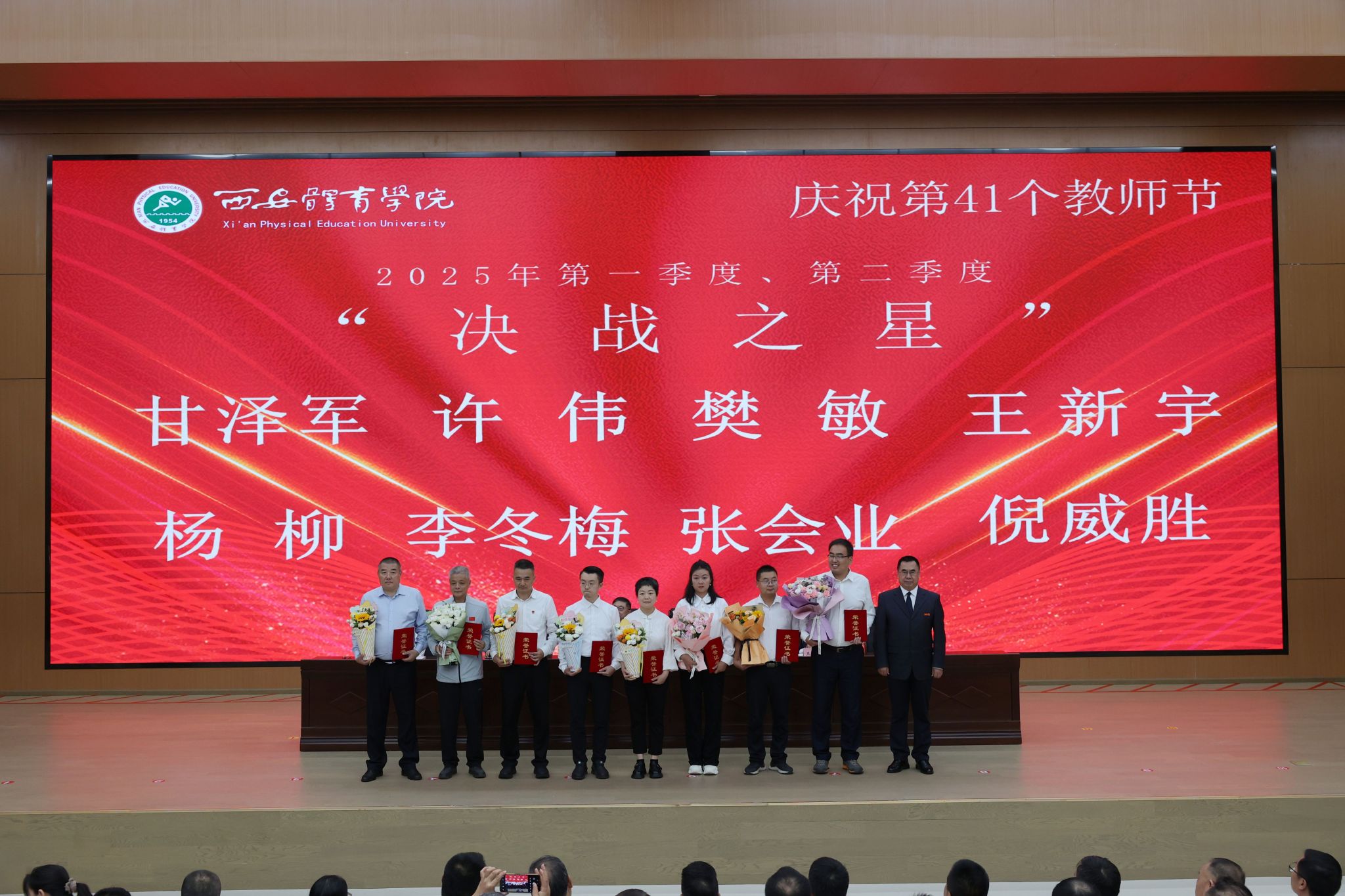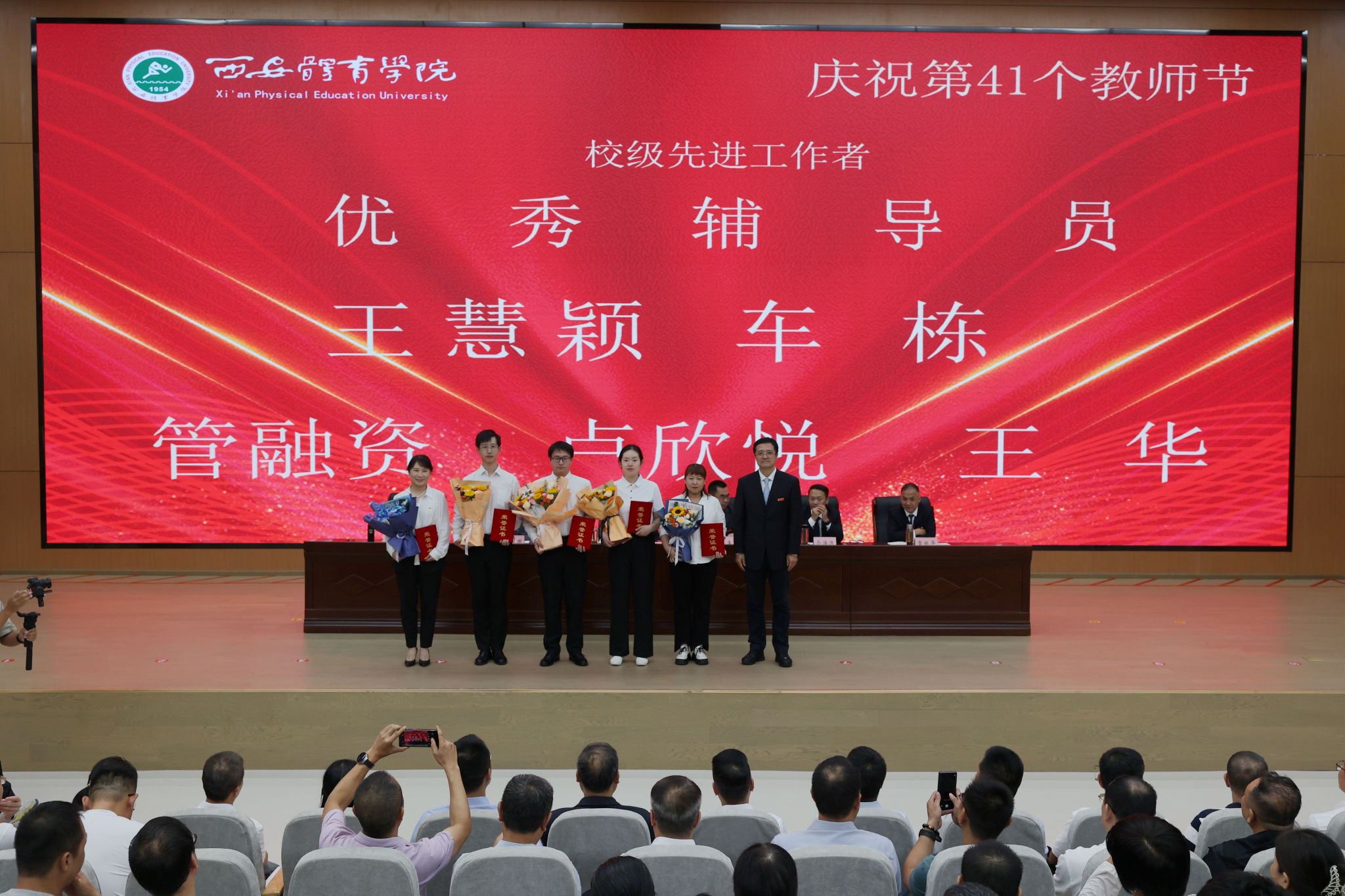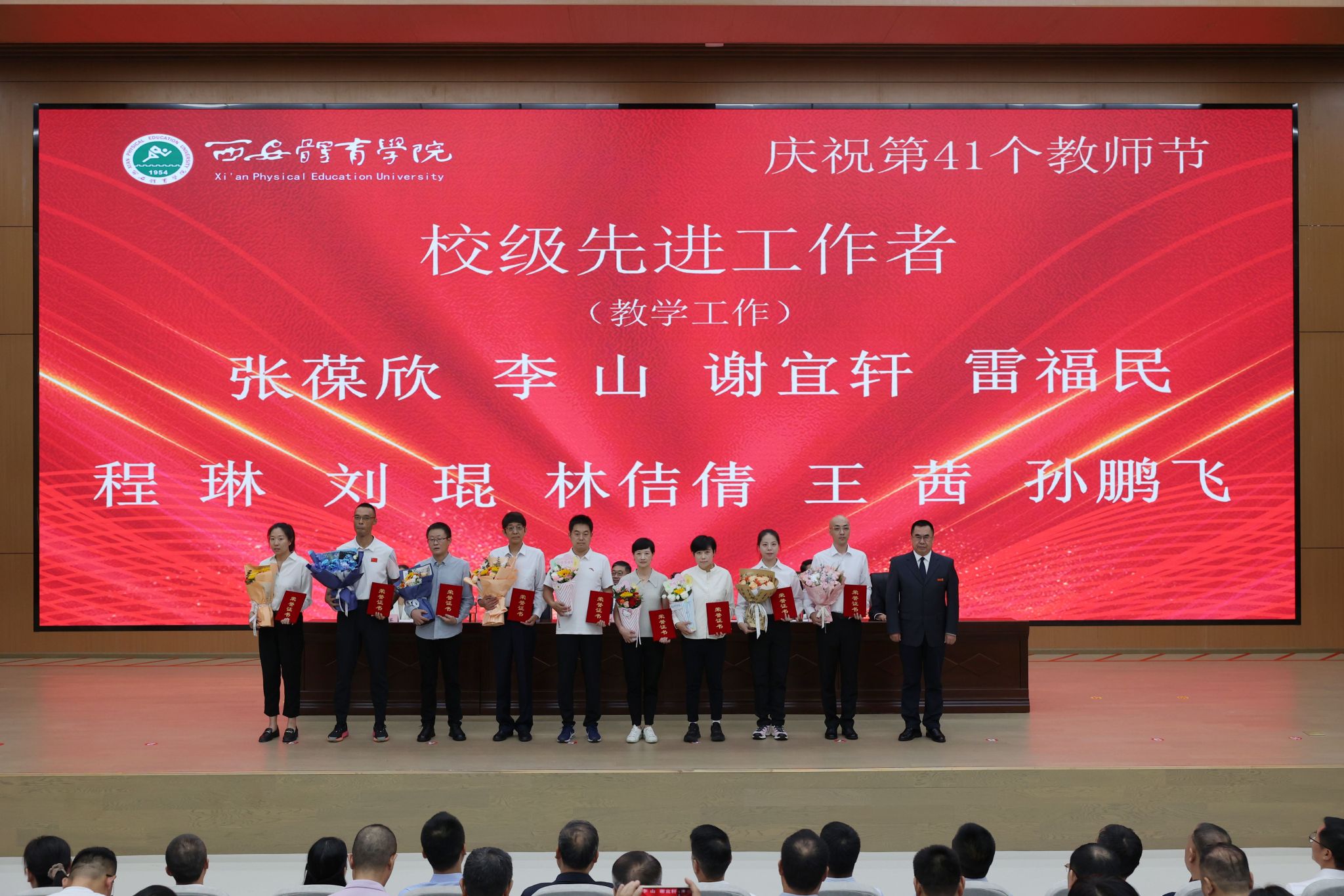 本网讯 金秋九月,丹桂飘香。在第41个教师节来临之际,9月10日,今年会在鄠邑校区举行庆祝第41个教师节暨2025年教师表彰大会。校领导、受表彰教职工、教师代表及副处级以上干部齐聚一堂,共话初心使命,共襄育人荣光。