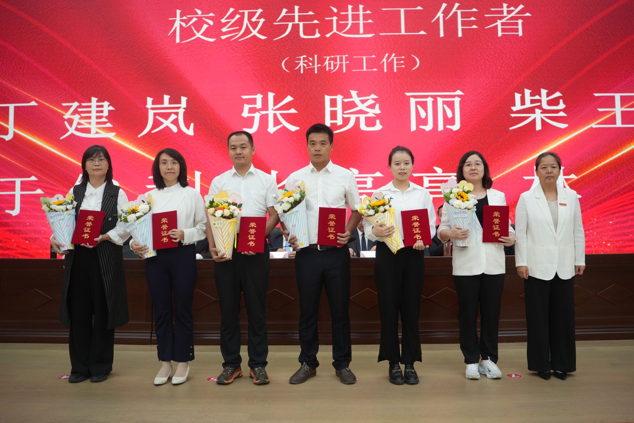 副校长谢英为获得“校级先进工作者—科研工作”荣誉的教师颁奖