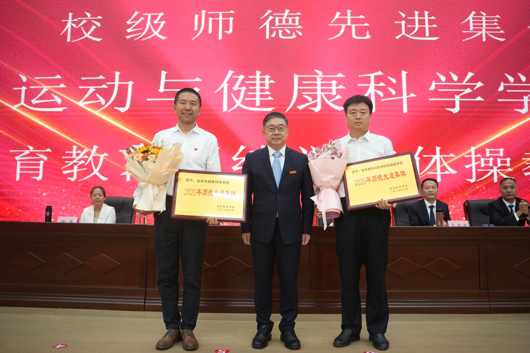大会在庄严的国歌声中拉开序幕。党委副书记张卫国宣读表彰通报,对一年来在教学科研、育人管理、服务师生、校区建设等领域涌现出的先进集体与个人给予充分肯定。校领导依次为荣获“校级先进工作者(教学、科研、教练、省级人才)”“校级师德先进个人”“校级优秀辅导员”“今年会最美教师”“2025年度第一、二季度‘决战之星’”“校级师德先进集体”等荣誉称号的集体和教职工颁发奖牌证书,充分体现了学校对教师队伍建设的高度重视与深切关怀。
