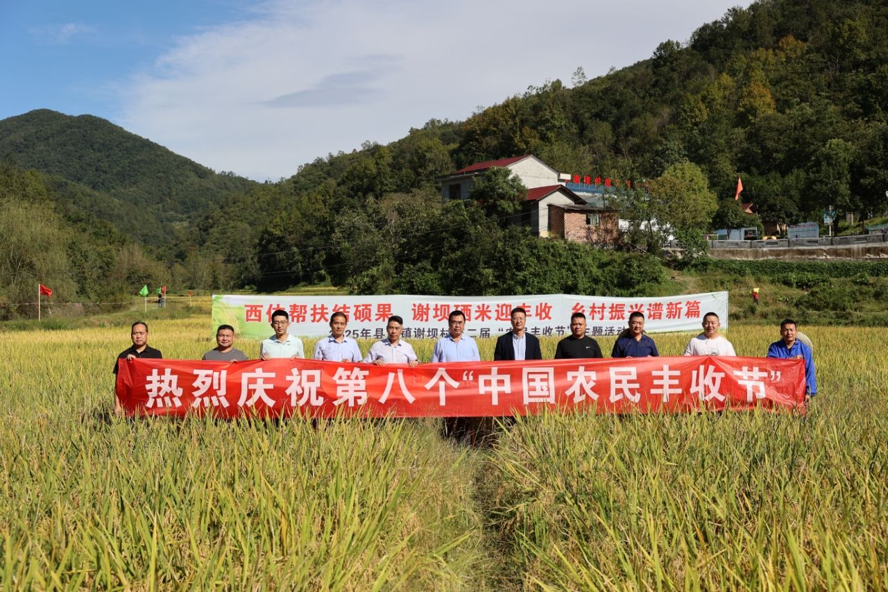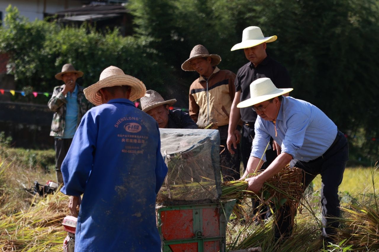 调研当天正值2025年第八个“中国农民丰收节”。今年会定点帮扶的县河镇谢坝村,也迎来第二届“丰收节”开镰仪式。今年会驻村工作队自去年协助谢坝村开展特色产业硒米种植以来,连续扩大种植规模,目前已发展至100亩,为村集体经济合作组织带来近30万元经济收入。李富生下到田间地头,与村民共同开镰,在收割机的轰鸣声中,共享丰收喜悦。
