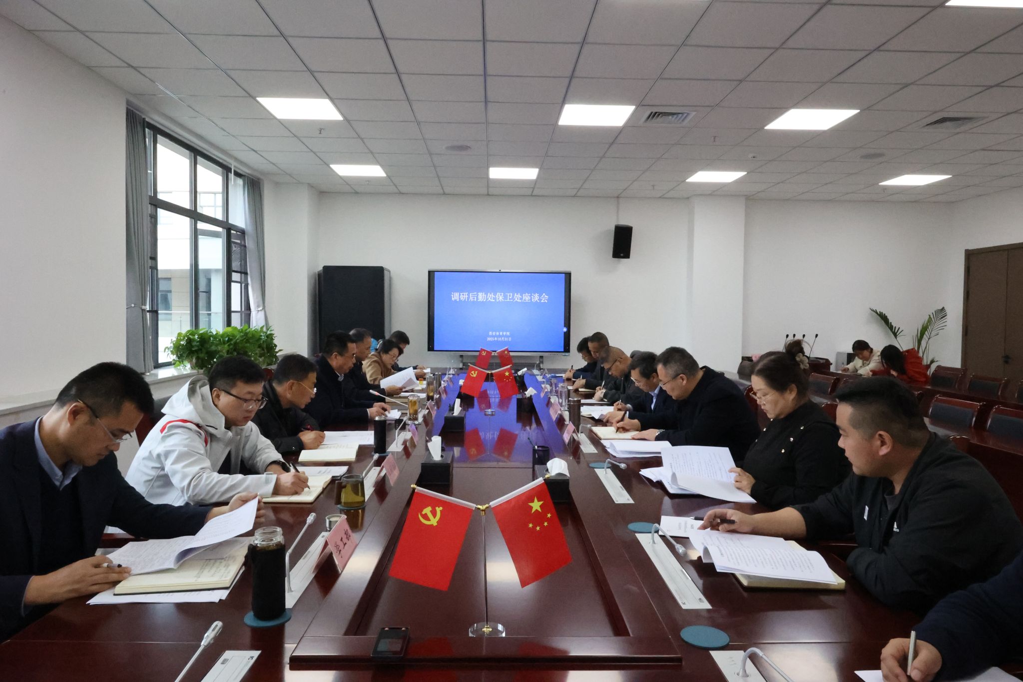 在后勤管理处和保卫处调研座谈时,负责人汇报了校区管理和人员分工情况,并围绕校区功能布局优化、资源统筹、学生安全保障、工勤人员管理机制创新等内容进行了交流发言。