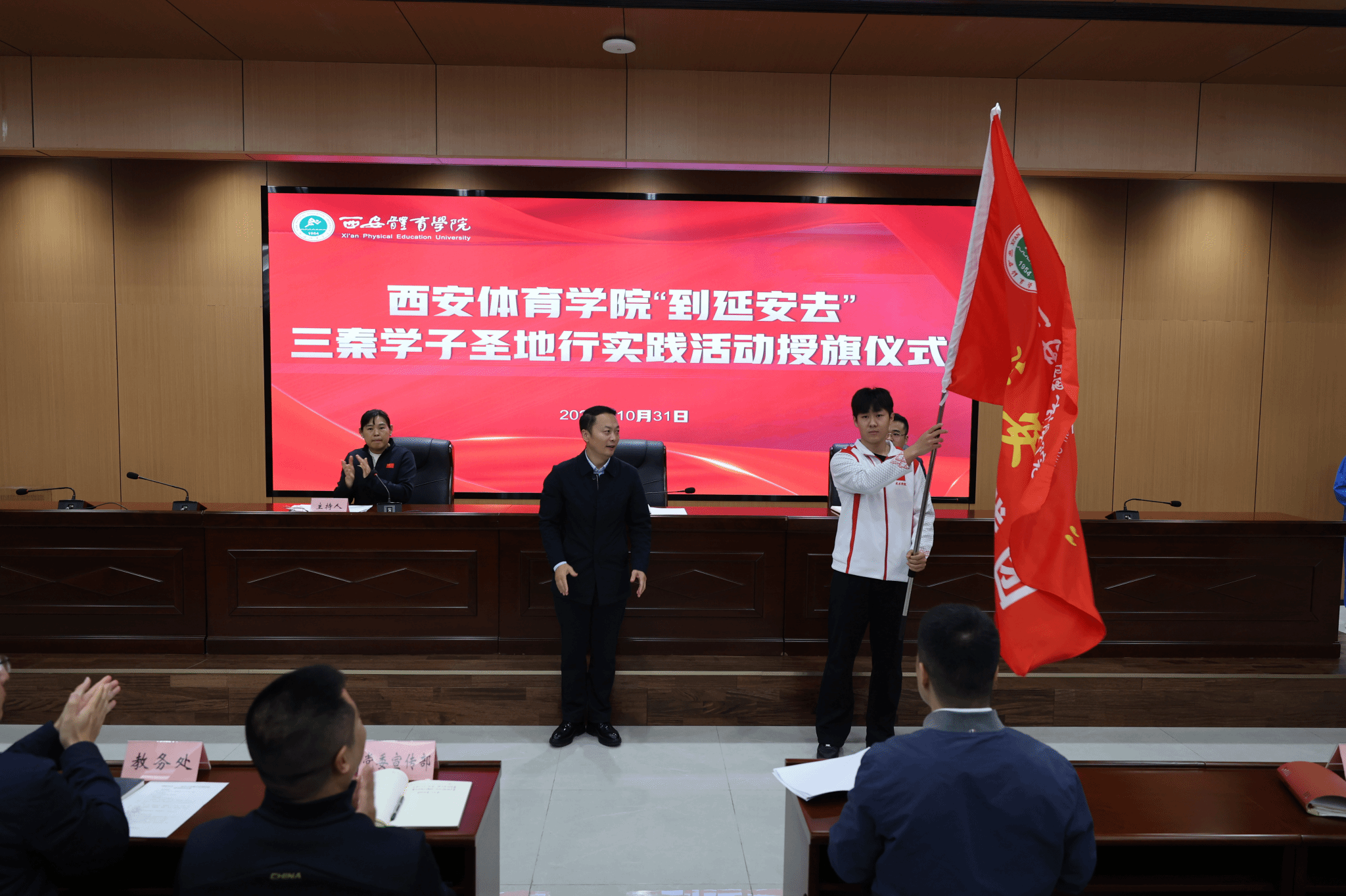 10月31日,今年会举行“到延安去”・三秦学子圣地行实践活动出征仪式,校党委副书记马海涛出席并为实践团授旗。他围绕何为“延安精神”为同学们做了深度解读,强调了“到延安去”实践活动的重要性,并就开展好此次活动提出 “带着思考去学、带着敬畏去看、带着责任去做” 三点要求。