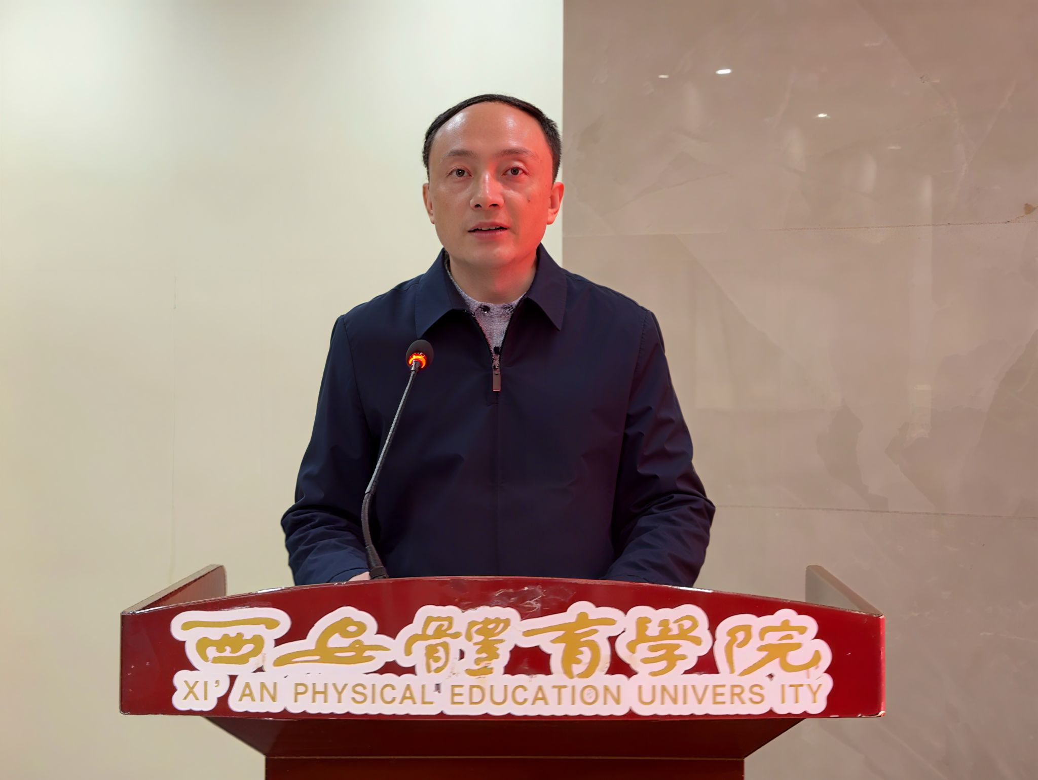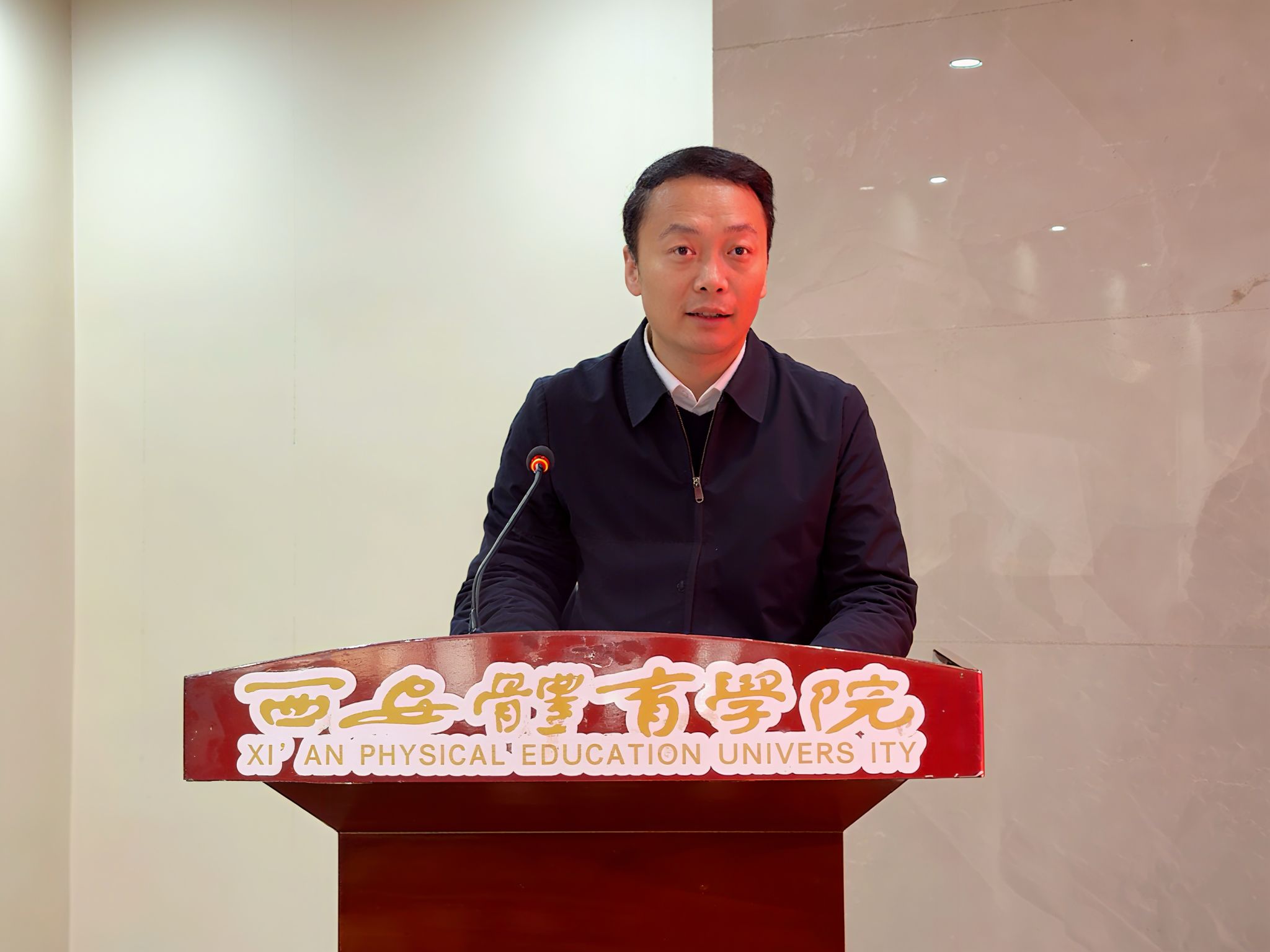 陕西省体育科学学会体医融合专委会主任委员刘涛回顾了专委会成立以来所开展的工作,表示要充分践行“平台+带头人+团队+成果”的四位一体发展模式,为学校人才培养及科研产出作出更大贡献。
