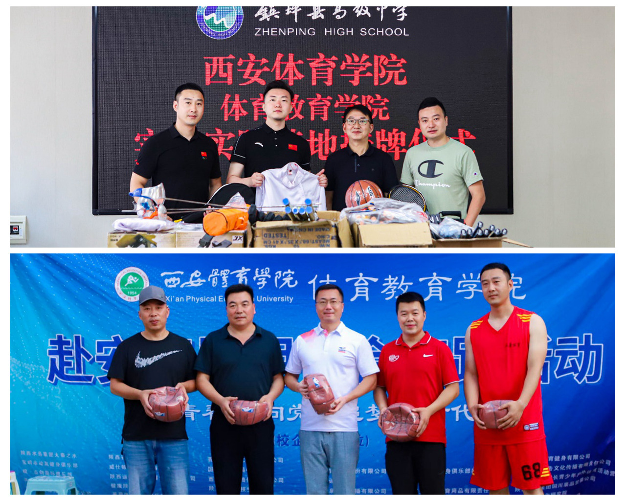 体育教育学院党委书记高月宏为镇坪县高级中学和镇坪县钟宝小学实习实践基地授牌、校企合作单位为镇坪县高级中学捐赠体育器材、社会实践服务团向镇坪县篮协捐赠篮球