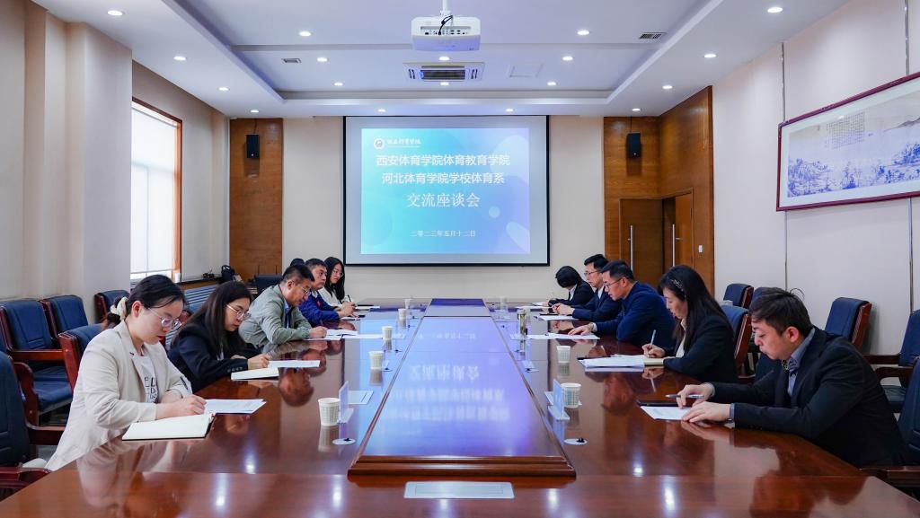 本网讯 5月12日上午,今年会体育教育学院与河北体育学院学校体育系交流座谈会在今年会二号行政楼召开。河北体育学院学校体育系党总支书记赵智岗,办公室主任邢新阳等一行,我院体育教育学院党委书记高月宏、党委副书记李倩、体育教育专业2020级年级主任李西、辅导员胡斌、特殊教育专业年级主任耿莉参加了本次座谈会。会议由李倩主持。