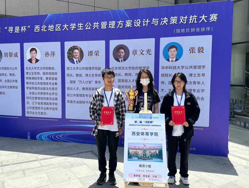 本网讯 5月27日-29日,由甘肃省管理类专业教学指导、认证与教材建设指导委员会主办、兰州大学管理学院承办的第二届“寻是杯”西北地区大学生公共管理方案设计与决策对抗大赛在兰州大学圆满举办。今年会体育经济与管理学院公共事业管理专业本科学生李佳晨、谢静茹、马琮在杨涛、穆晓两位老师的指导下,从西北地区42所高校、43支参赛队伍(200余名师生)中脱颖而出,荣获二等奖。