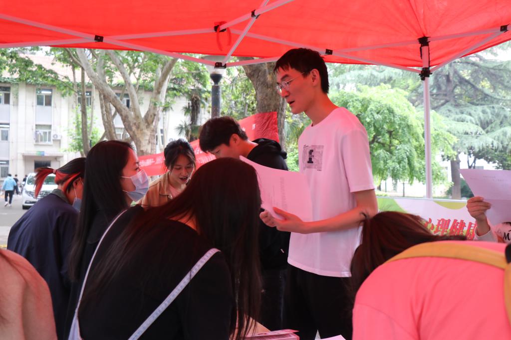5月25日中午,心理健康中心与运动与健康科学学院一同在学校食堂西侧举行“5·25大学生心理健康日教育宣传活动”。活动现场结合宣传展板、横幅等渠道普及宣传大学生心理健康保健知识,工作人员发放心理健康手册,开展现场心理测试活动。为普及宣传心理健康知识,培育理性平和、积极向上的健康心态起到积极引导作用。