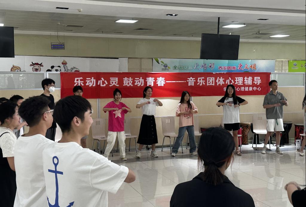 5月18日下午,心理健康中心邀请西安国际医学中心音乐治疗团队开展了“乐动心灵 鼓动青春”——音乐团体心理辅导,来自研究生部、运动与健康科学学院等30余名同学参加了本次活动。参与者在两位音乐治疗师的带领下,跟随轻快的音乐敲打乐器,释放压力、放松心情,促进彼此之间的情感交流的同时培养学生热爱生活的心理品质。