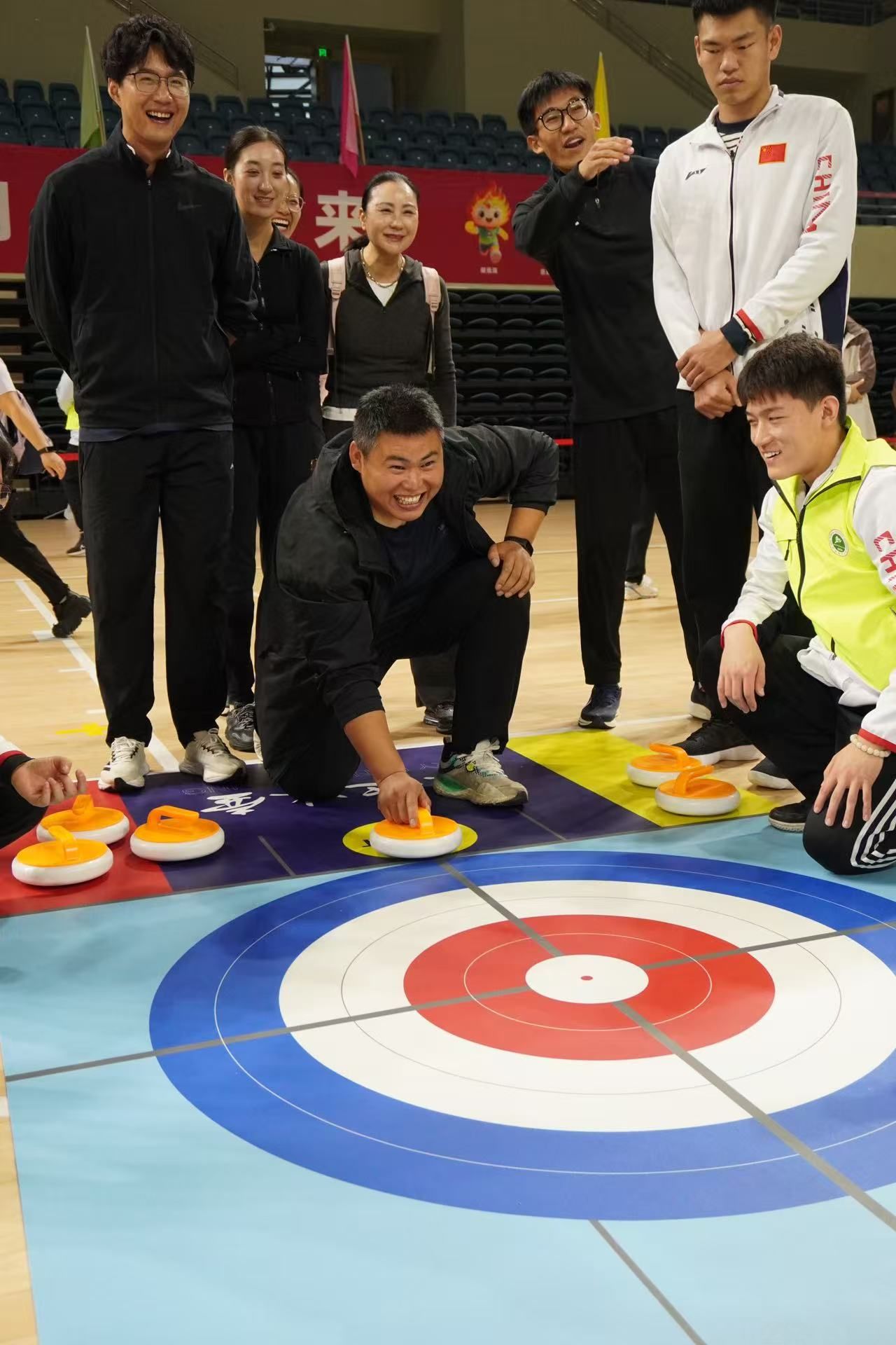 作为本次运动会的亮点项目之一,赛场特别设置了“旱地冰壶”等兼具趣味与策略的项目,吸引了众多教职工的积极参与,完美地将冰雪运动的智慧与魅力带到身边,这正是今年会积极响应“带动三亿人参与冰雪运动”号召、普及与发展冰雪项目的一次生动实践。