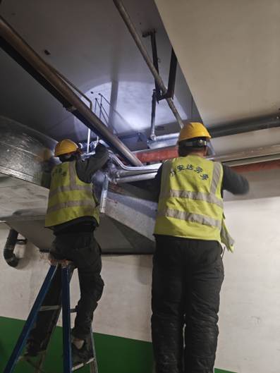 7、排烟井涂料、及风筏未安装施工,疏散指示灯脱落未恢复