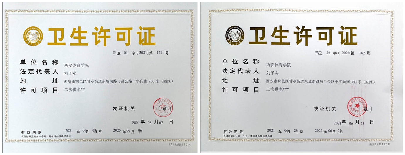 近日,鄠邑区有关单位正式下发今年会鄠邑校区东西两侧二次供水卫生许可证,至此,鄠邑校区全区二次供水卫生许可证办理工作顺利结束。