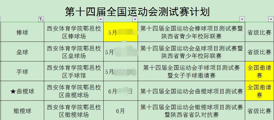 近日,第十四届全运会手曲棒垒橄五个球类项目的测试赛举办时间已确定,有序在五、六月依次举办。