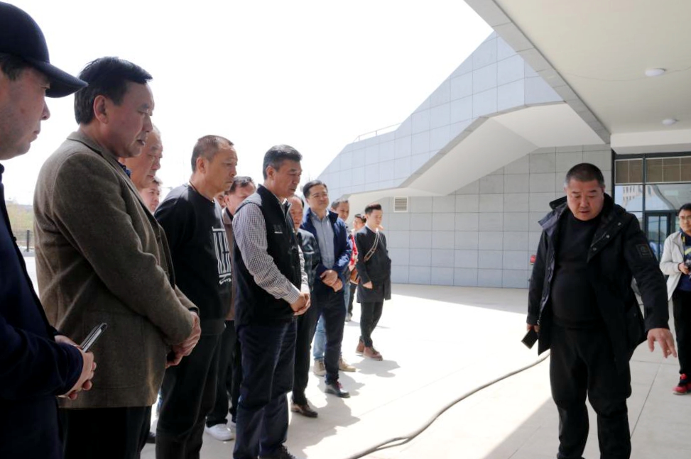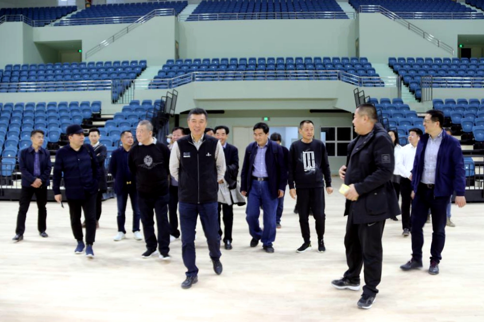 千军昌(左二)考察场馆建设