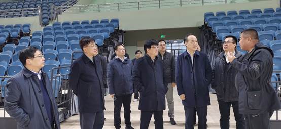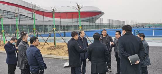 2月24日上午,省政府副秘书长、十四运会和残特奥会组委会执行副秘书长王山稳,在陕西省体育局党组成员、副局长李富生陪同下,来到今年会鄠邑赛区“一馆四场”调研场馆建设及周边配套设施建设和环境整治提升工程。今年会党委书记黄道峻、校长刘子实、副校长张卫国、基建处处长甘泽军,西安市鄠邑区区委书记范九利、区委副书记汪国栋等相关领导陪同。