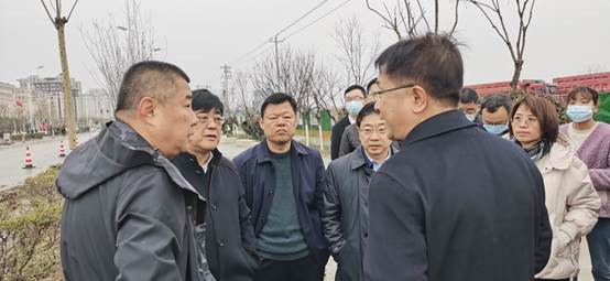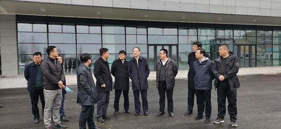 李富生(图右三)向王山稳(图右六)介绍前期建设情况
