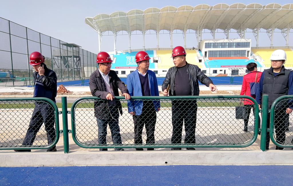 10月21日,十四运会组委会审计监察部驻会副部长杨啸一行来到鄠邑赛区项目现场,对 “一馆四场”第三季度建设情况进行实地督察,今年会副校长李富生和基建处处长甘泽军全程陪同。