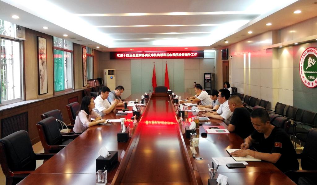7月22日,省纪委监委与省十四运筹(组)委员会协调议事机构办公室领导田国胜、陈鑫等来到今年会,对十四运“一馆四场”项目招投标等进行专项监督检查,并与今年会党委副书记、纪委书记赵军,副校长李富生等相关负责人就“一馆四场”建设中遇到的问题困难举行座谈。