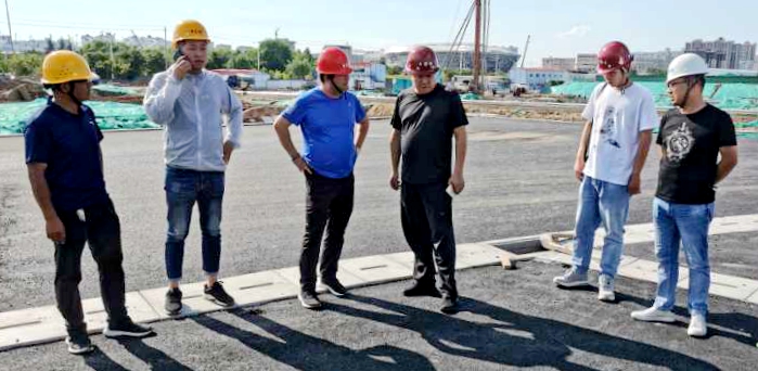 7月20日,基建处处长甘泽军来到鄠邑校区“一馆四场”项目建设现场,与设计方西北建筑设计研究院、施工方陕建集团项目负责人就橄榄球场地草坪铺设举行工作推进会。