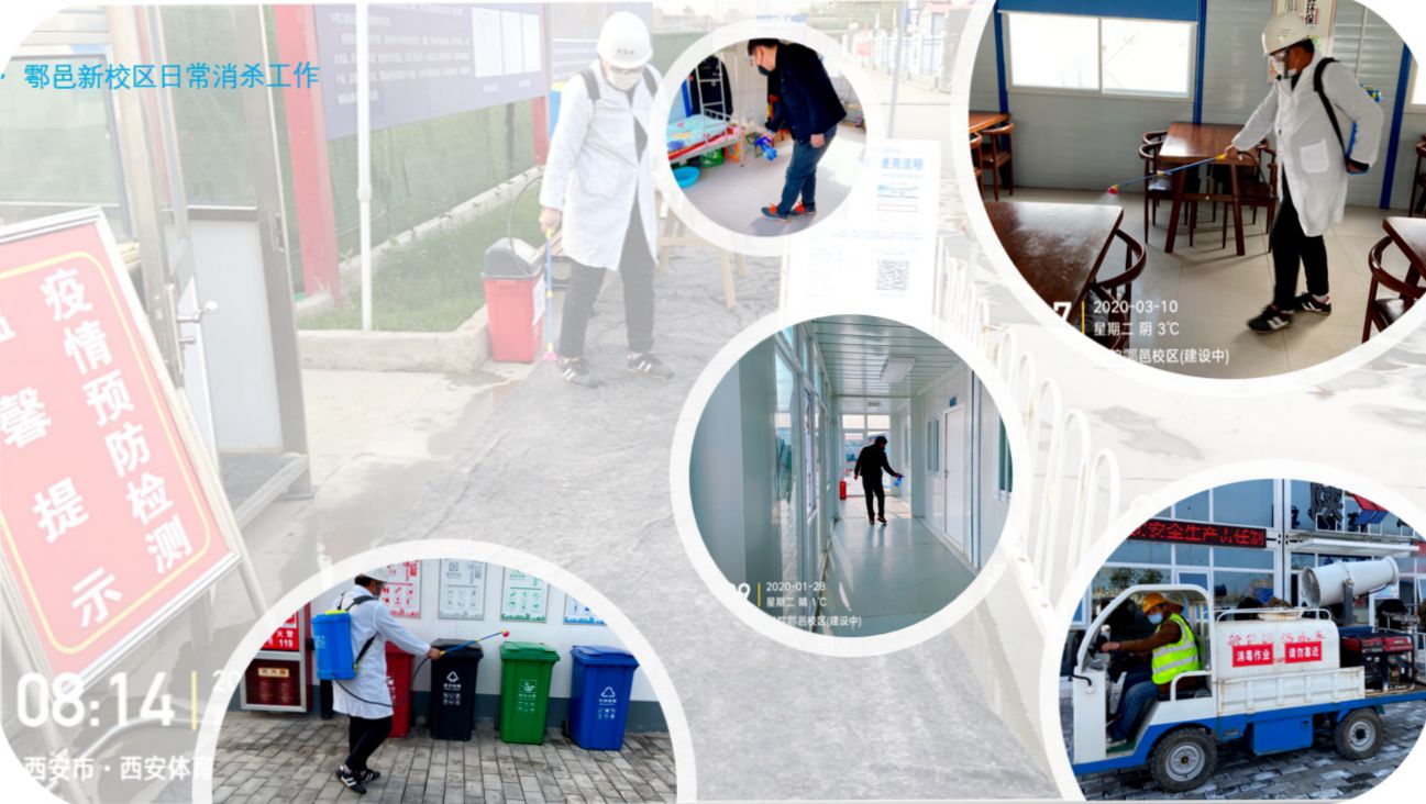 防疫措施全覆盖。基建处会同施工单位与监理单位,通过岗前防疫知识考试,严格实行工区全封闭管理,落实隔离环境,执行消毒清洁通风制度,返岗健康信息核查,严抓防疫门禁及体温监测制度,核酸检测措施,分餐与错峰就餐等,实现施工各环节防疫全覆盖;为加强施工现场各类工作人员的防疫认识,基建处制作宣传展板22块,横幅23条,海报48张,印制防疫宣传手册350本,进一步使施工现场工作人员筑牢思想防线,在保障工程进度的同时保证自己的生命安全与身体健康。