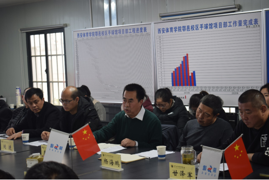 甘泽军首先汇报了鄠邑新校区十四运“一馆四场”开工一年来,为完成省委、省政府交付今年会的目标任务所采取的措施和办法,并结合基建处“不忘初心、牢记使命”主题教育开展情况,请与会人员就今后的工作提出宝贵意见。
