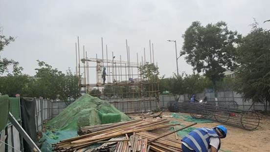 而在Z-2轴墩柱施工点,架体搭设工作正紧张进行。施工团队依据施工图纸和安全规范,科学规划架体搭设方案。从基础处理、立杆安装,到横杆、斜杆的连接加固,每一步都一丝不苟。在确保架体稳定性和承载能力的同时,做好安全防护措施,为后续墩柱钢筋绑扎、模板安装及混凝土浇筑创造良好的作业条件。