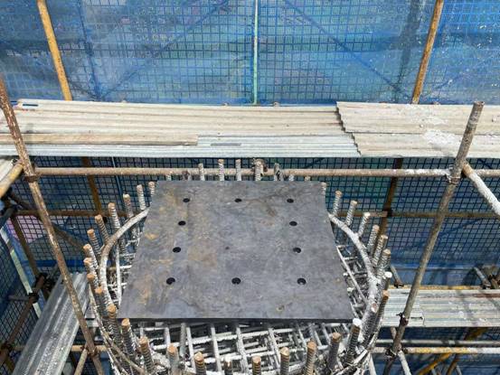 固定环节,采用了特殊定制的锚固装置,确保钢板与桥墩紧密结合,稳固可靠。保障施工符合设计和规范要求。