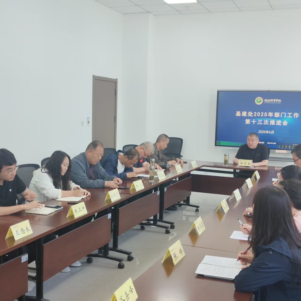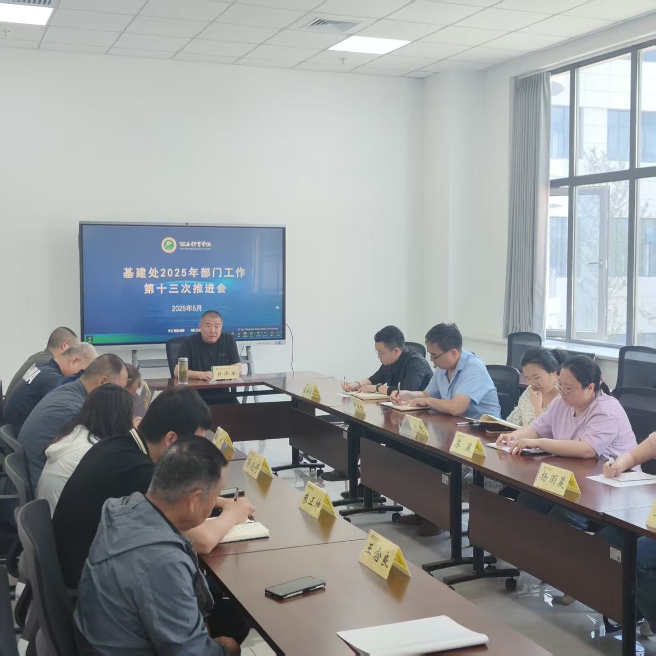 5月28日上午,处长甘泽军组织召开2025年部门工作第十三次推进会,通报多项工程进展情况,部署下阶段工作重点。会议全面梳理了今年4月至今2个月来,基建处各工程项目组取得的显著成果及尚未妥善解决的痛点、难点,对部门全体成员在工作中存在的问题逐一进行了点评总结,部署安排了6月至7月各项目组在下阶段工程中的重点攻坚任务。