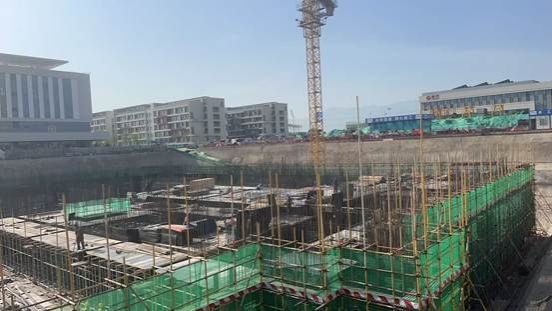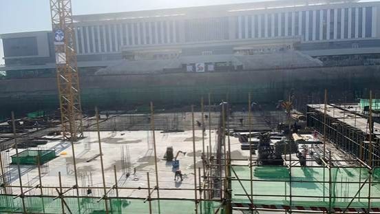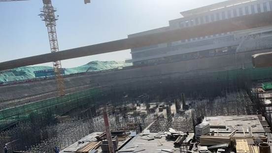 中段负三层钢筋网片绑扎铺设接近收尾,节点锚固细节完成验收,确保结构受力安全;混凝土灌注采用分层浇筑,养护措施同步落实,保障混凝土强度达标,目前进度过半。