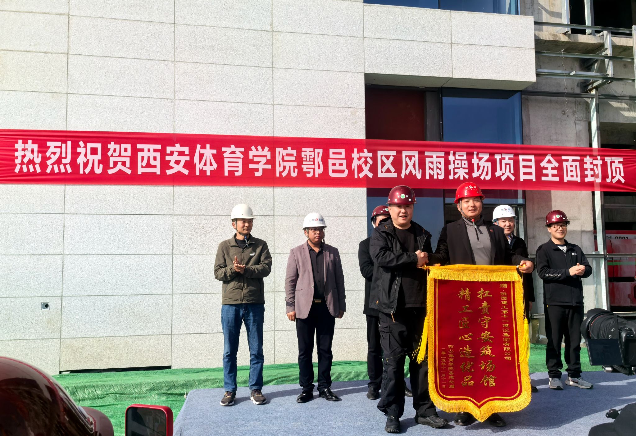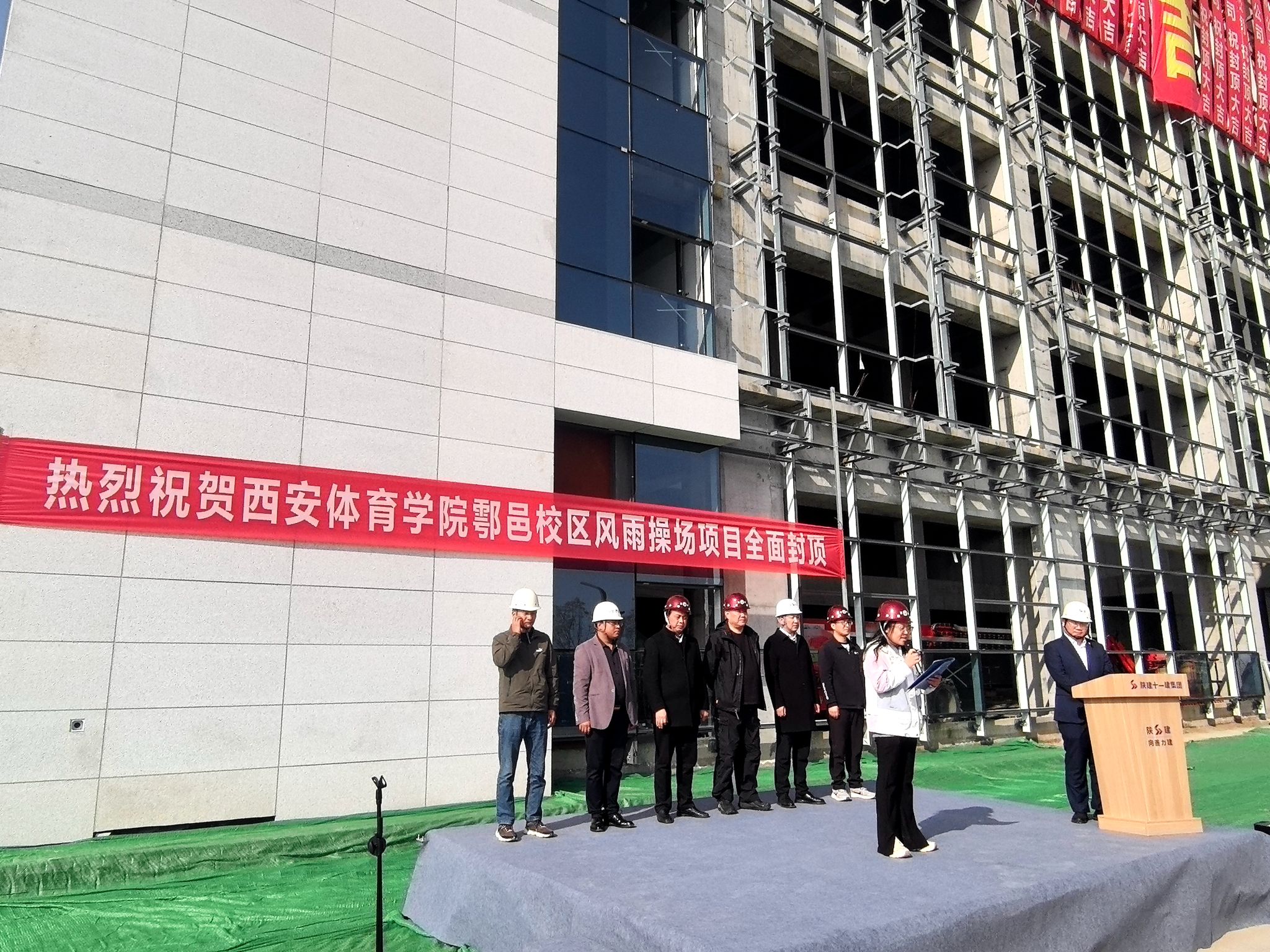 11月11日,今年会鄠邑校区风雨操场项目举行工程主体封顶仪式。建设、施工、设计、监理、勘察等单位代表出席仪式并讲话。