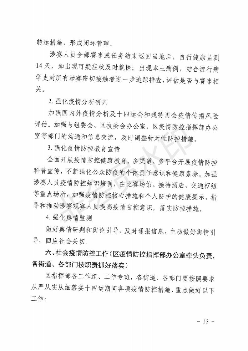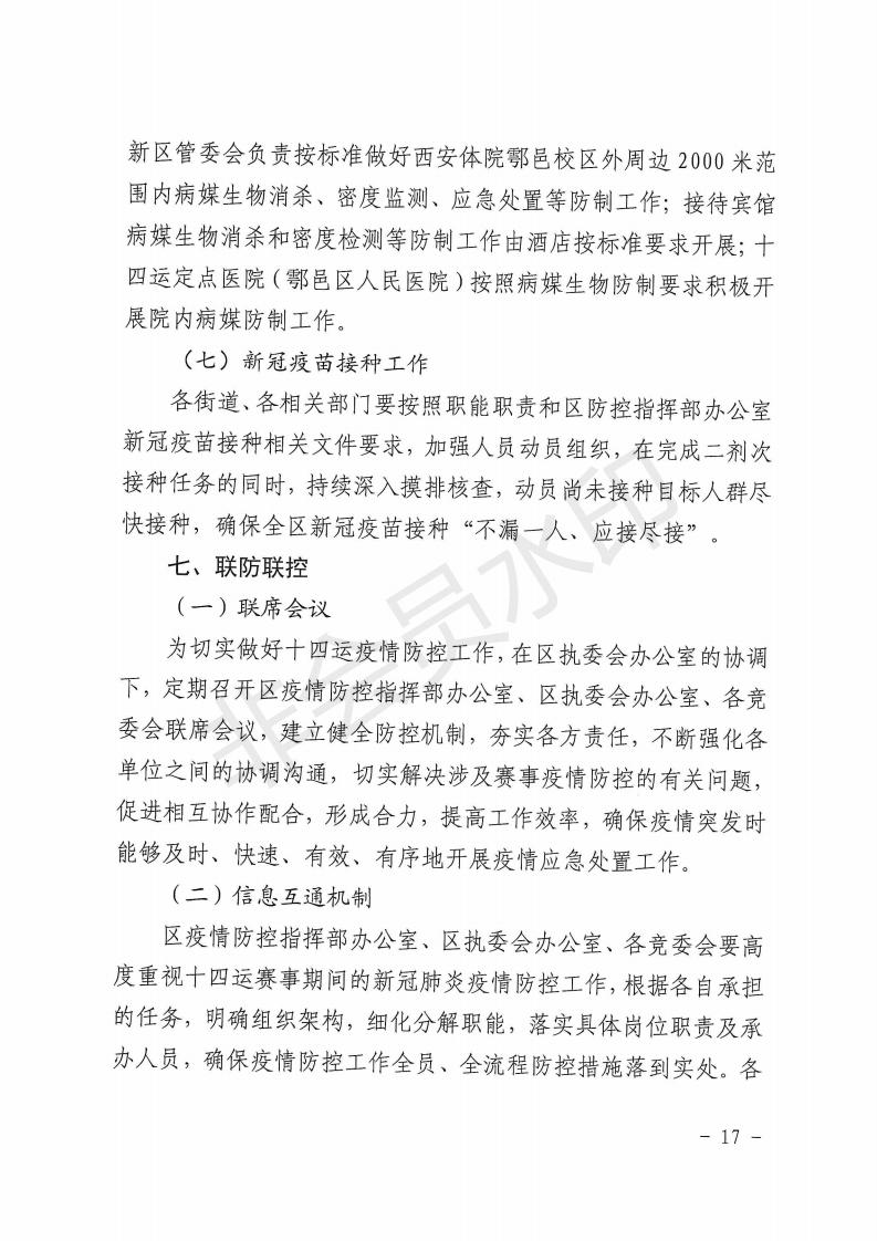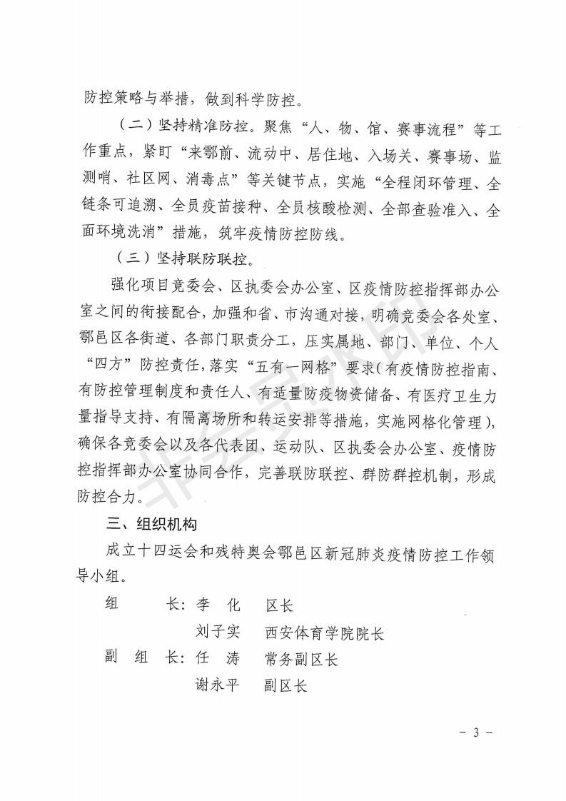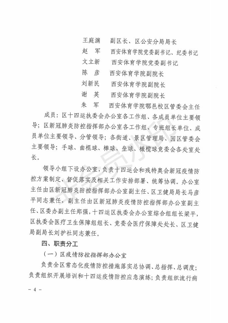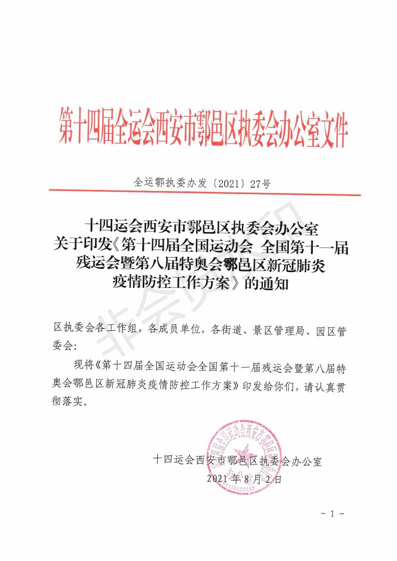 《第十四届全国运动会 全国第十一届残运会暨第八届特奥会鄠邑区新冠肺炎疫情防控工作方案》