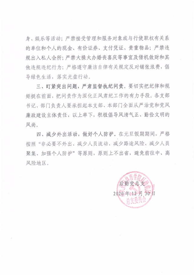 后勤党总支关于2021年“元旦”廉政过节的通知