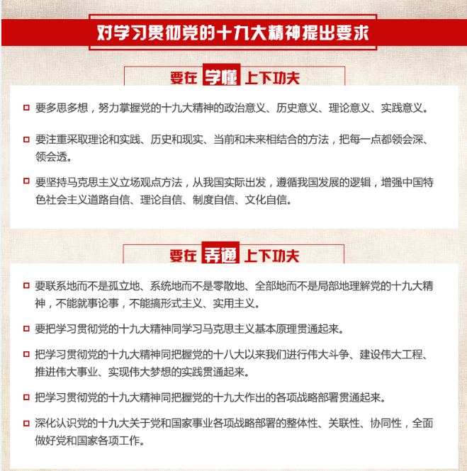 习近平对学习贯彻党的十九大精神提出哪些要求