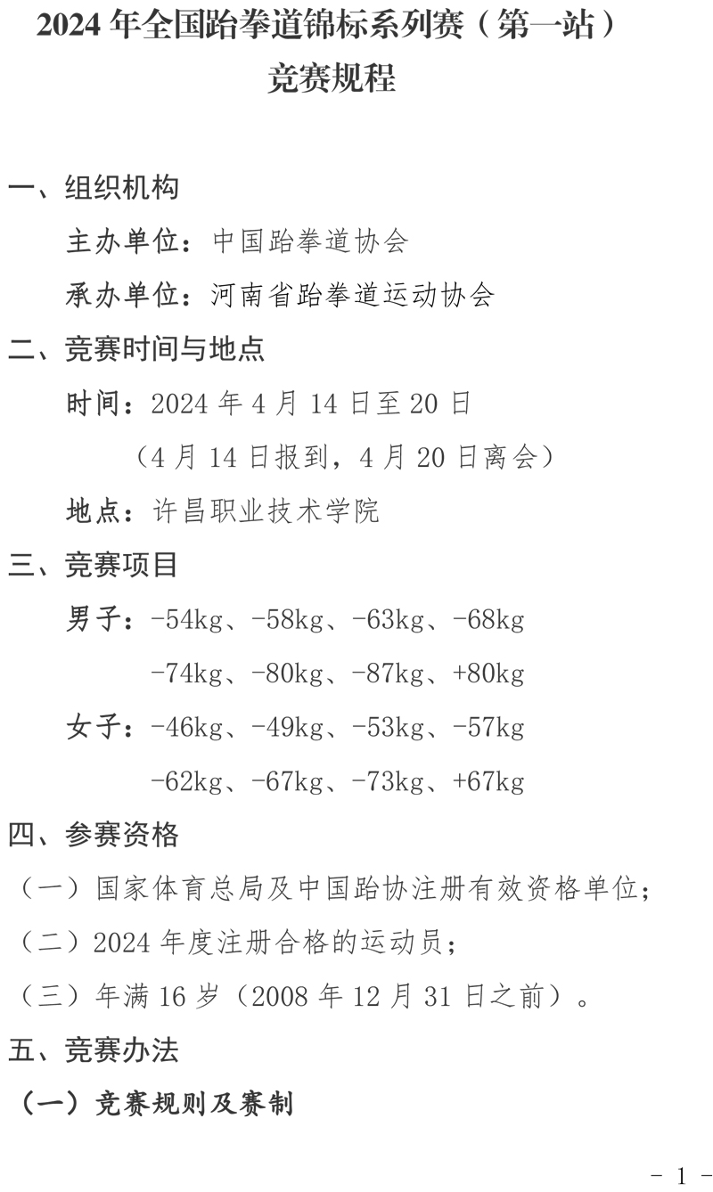 2024年全国跆拳道锦标赛系列赛(第一站)竞赛规程