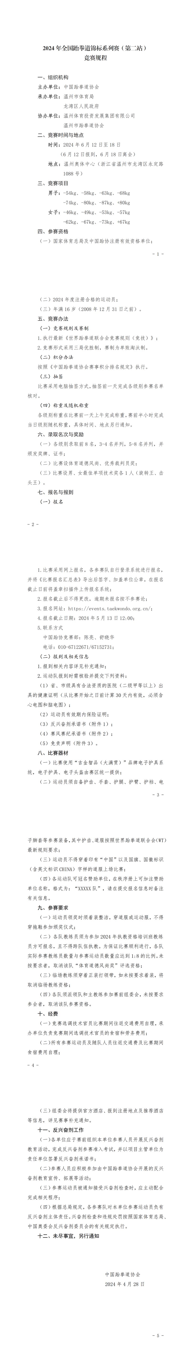 2024年全国跆拳道锦标赛系列赛(第二站)竞赛规程