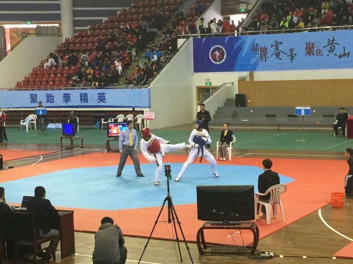 本网讯 2015年全国跆拳道锦标赛于3月23日至27日在安徽黄山举行,近800名跆拳道运动员参与角逐,其中不乏冠军名将,也是本年度该项目最高水平的比赛。在27日的比赛中,我院跆拳道名将李东华获得女子+73公斤级比赛金牌。