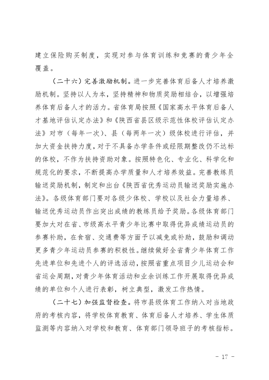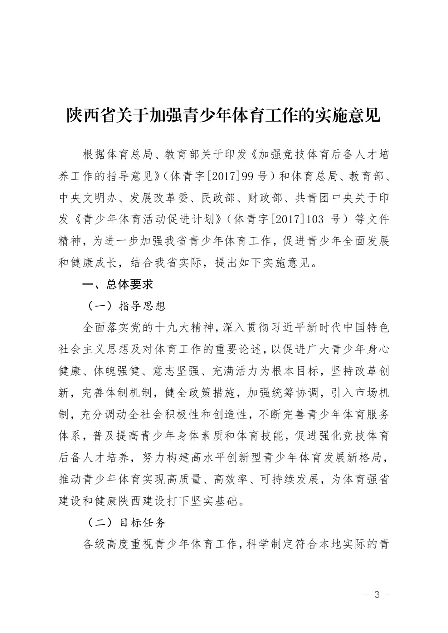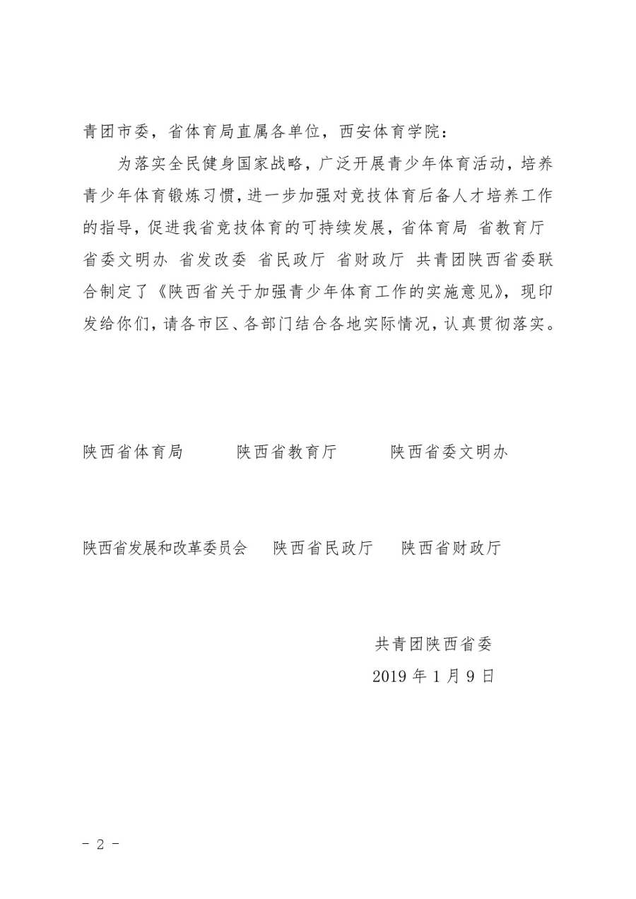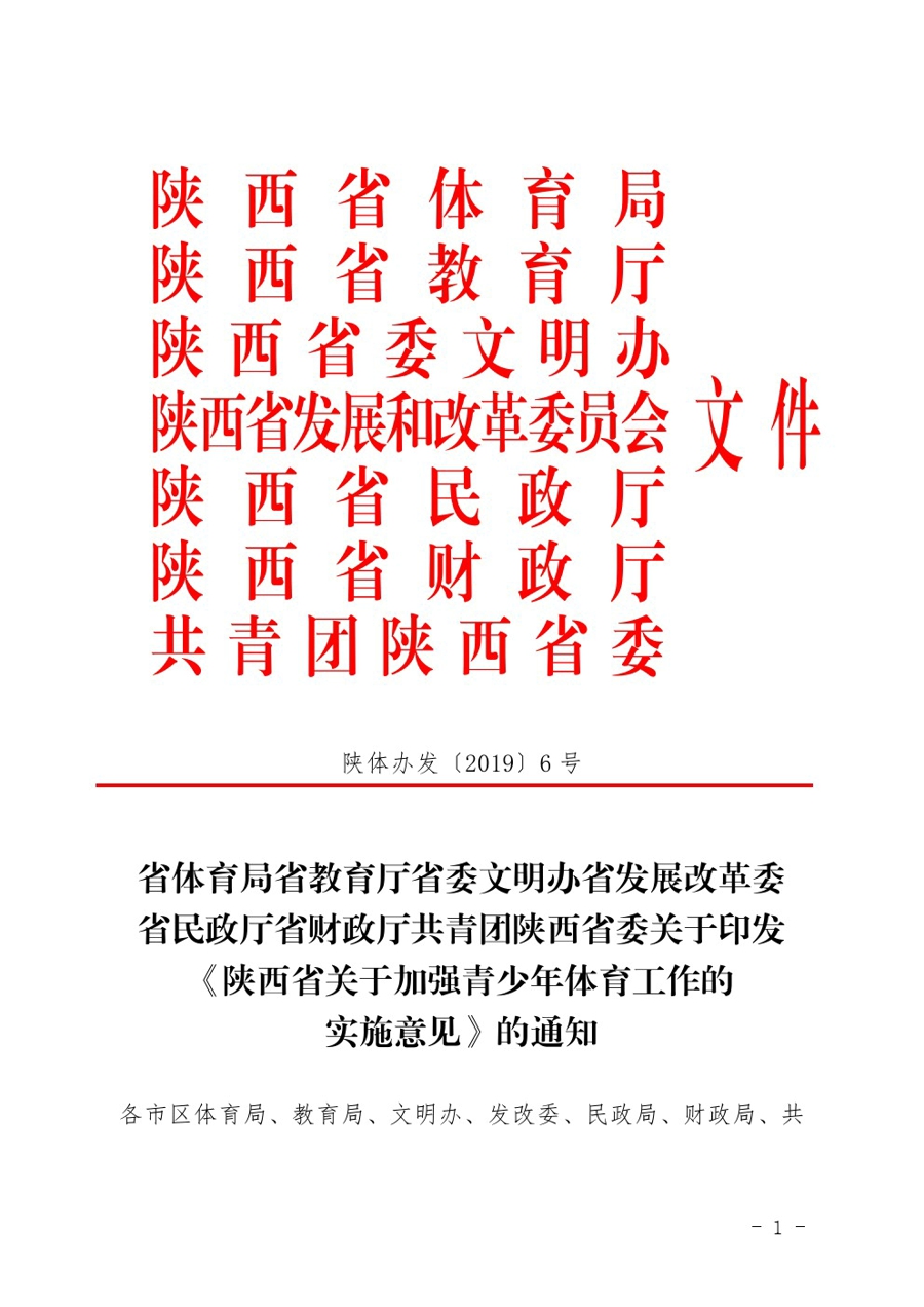 关于印发《陕西省关于加强青少年体育工作的实施意见》的通知