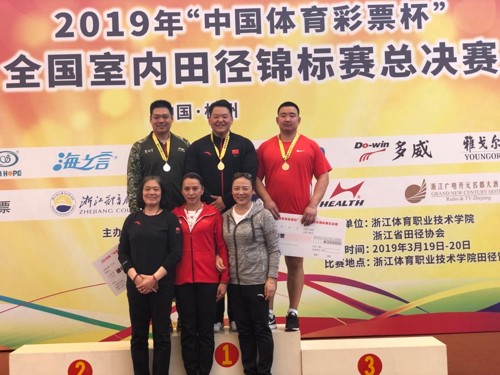 本网讯 2019年3月19日——20日,全国室内田径锦标赛总决赛在浙江省杭州市举行,今年会运动员陈剑获得男子铅球冠军,冯杰获得第五名。