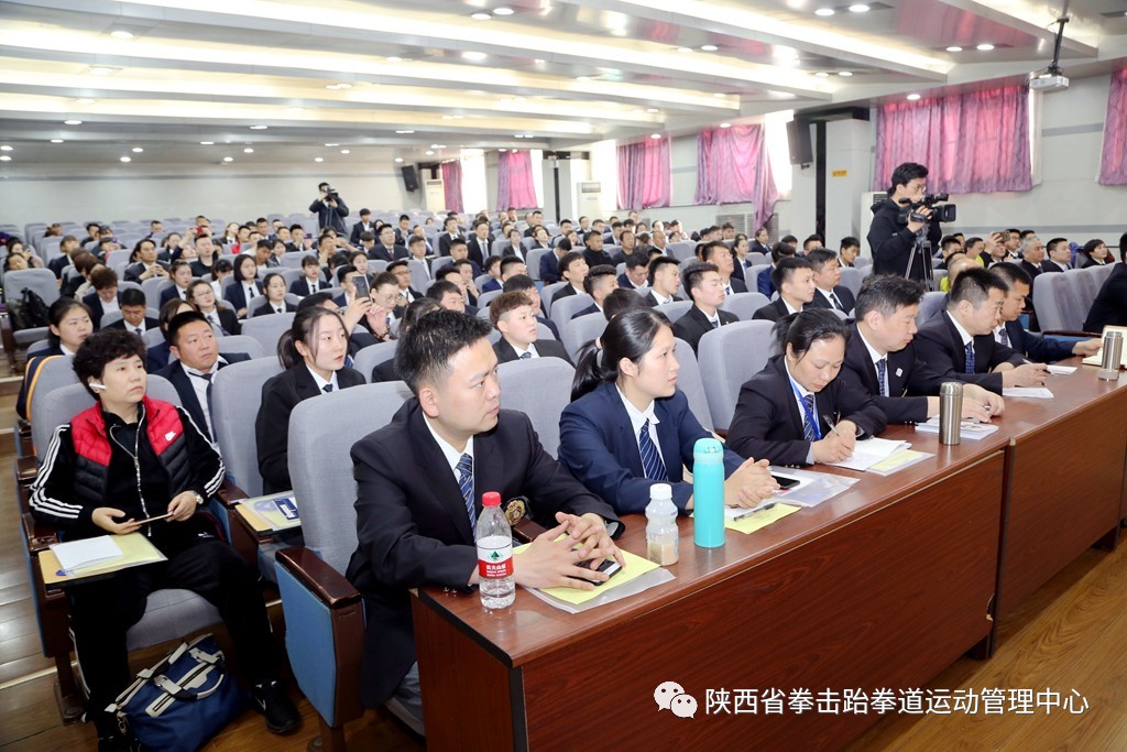 本网讯 4月2日至4月6日,由中国空手道协会主办,陕西省体育局承办,学院和省拳击跆拳道运动管理中心协办的“2019年全国空手道裁判员培训班”在学院开班,省体育局副巡视员陈波致欢迎词,中国空手道协会竞赛部主管张蜀祁、中国空手道协会裁判委员会马俊婷、特邀嘉宾世界空手道联盟资深双A级裁判员、英联邦空手道裁委会主席、大洋洲空手道裁委会委员Tran出席了开班仪式,中国空手道协会执委、竞技体校校长、省拳跆中心书记张文军主持了开班仪式。