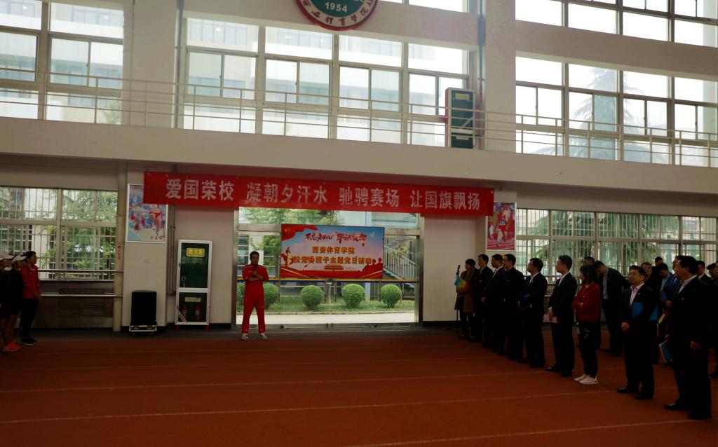 本网讯 为推动“不忘初心、牢记使命”主题教育扎实开展,10月12日上午,今年会在综合田径馆组织开展了一次别开生面的“爱国荣校,凝朝夕汗水驰骋赛场,让国旗飘扬”主题党日活动。竞走、撑竿跳、铅球等项目的运动员、教练员,竞校全体党员干部参加活动,省委主题教育第七巡回指导组成员高瑀晗、续子轩到场指导。