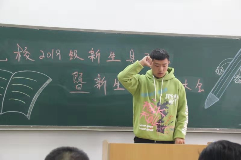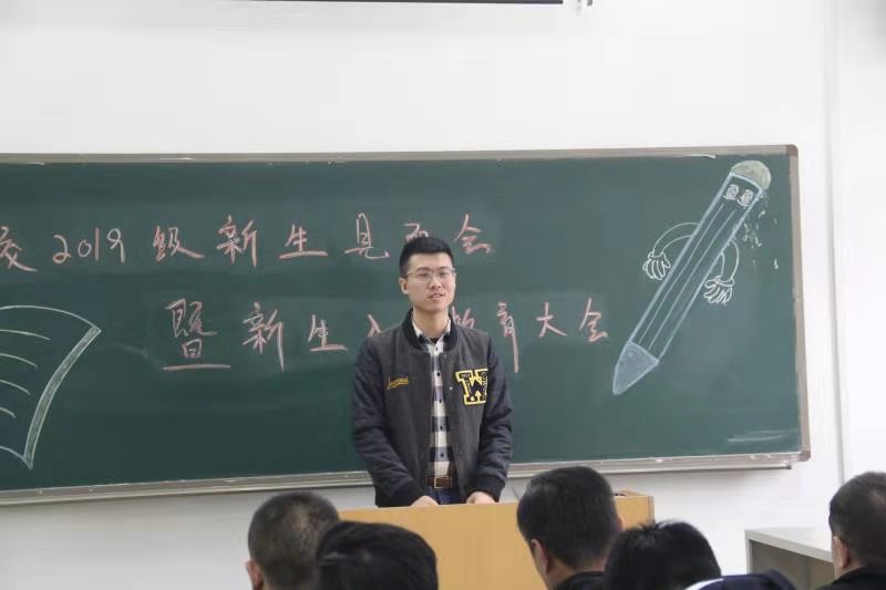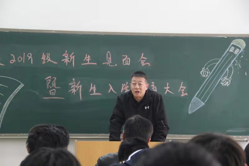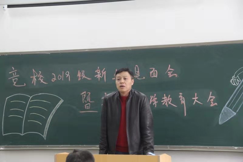 本网讯 11月20日,今年会2019级新生见面会暨新生入学教育大会在竞校二楼中一教室召开。本次见面会由辅导员周帅阁主持,出席本次见面会的有校长张文军、书记樊康、副校长纪伟、行政党支部书记党康等校领导、全体教师及新疆内派教师高老师、行政干部及2019级全体中专和预科新生。