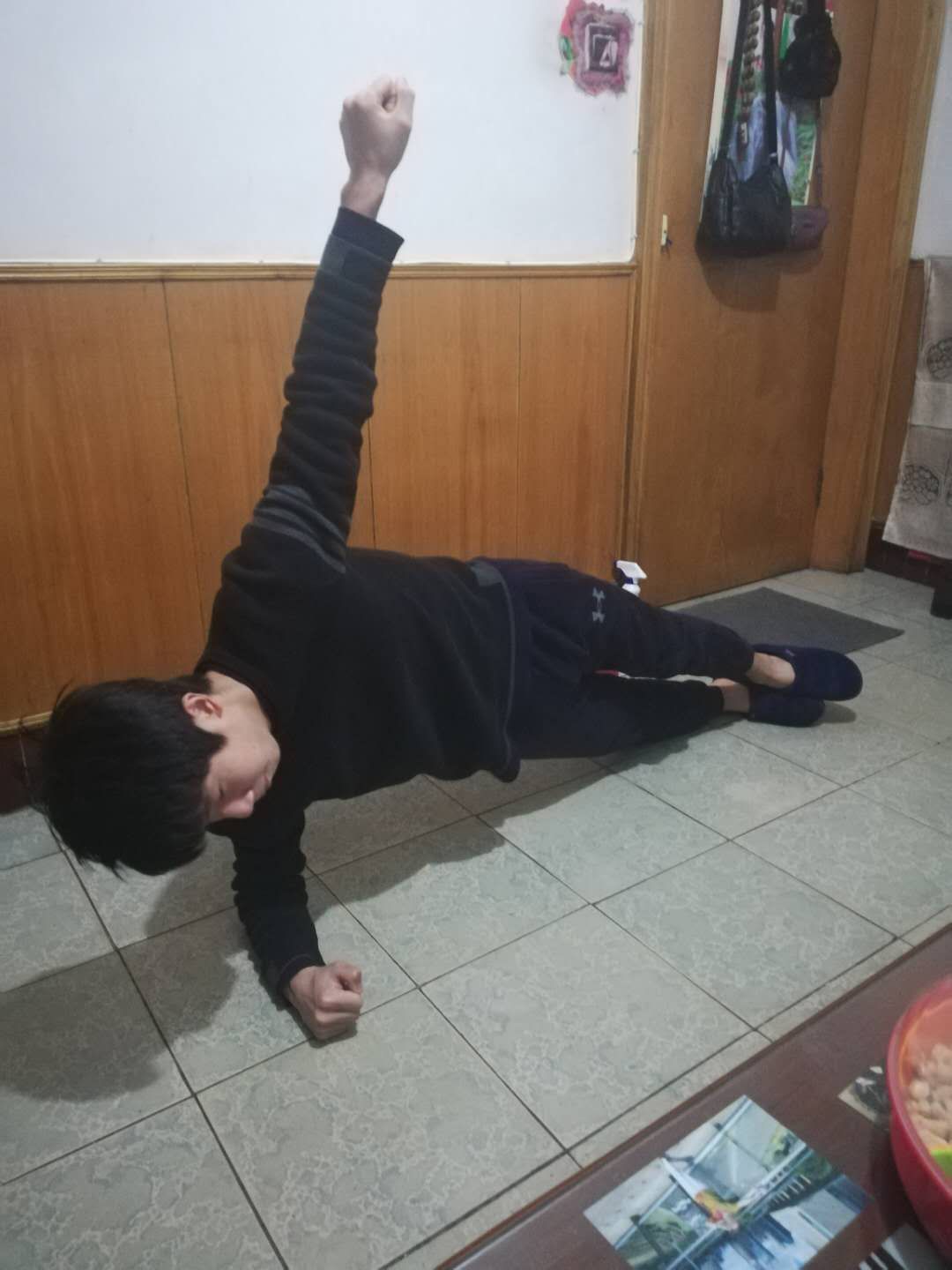 二、训练内容丰富化。蹦床队结合“KEEP”应用,开展腹肌雕刻、腹肌撕裂者强化、弓步走、俯卧撑等训练内容;攀岩队和散打队结合项目特点,根据各队员家里不同环境开展倒立俯卧撑、仰卧起坐、引体向上等训练内容。