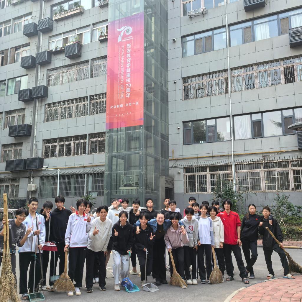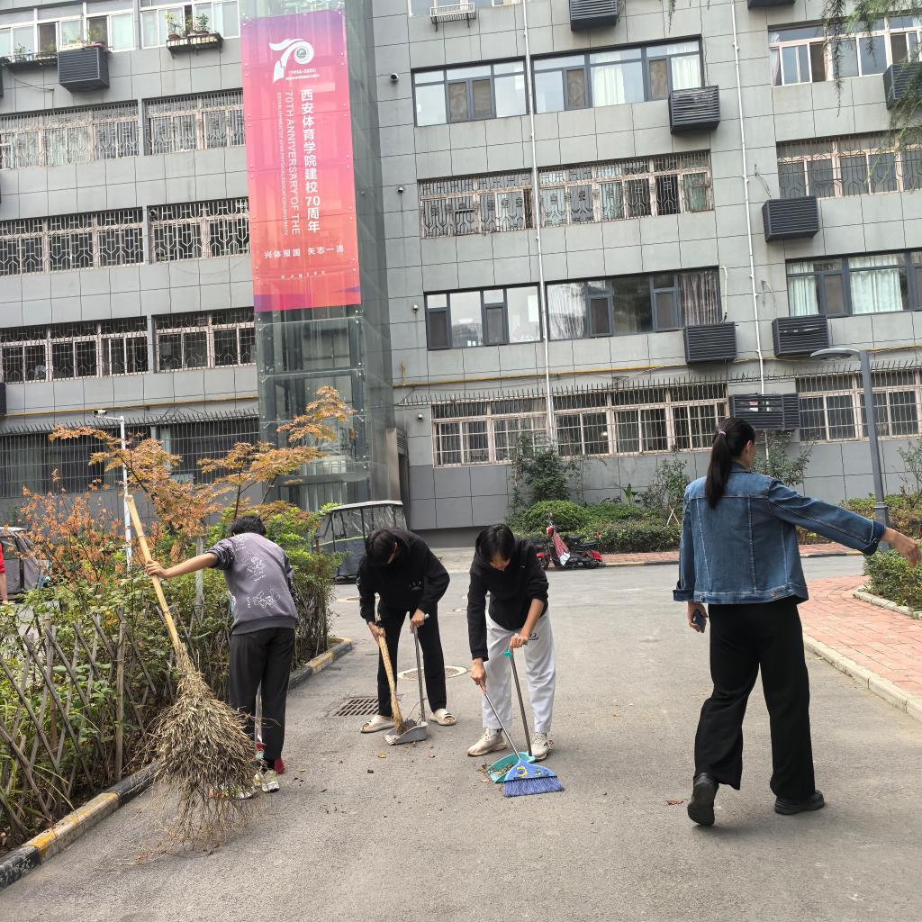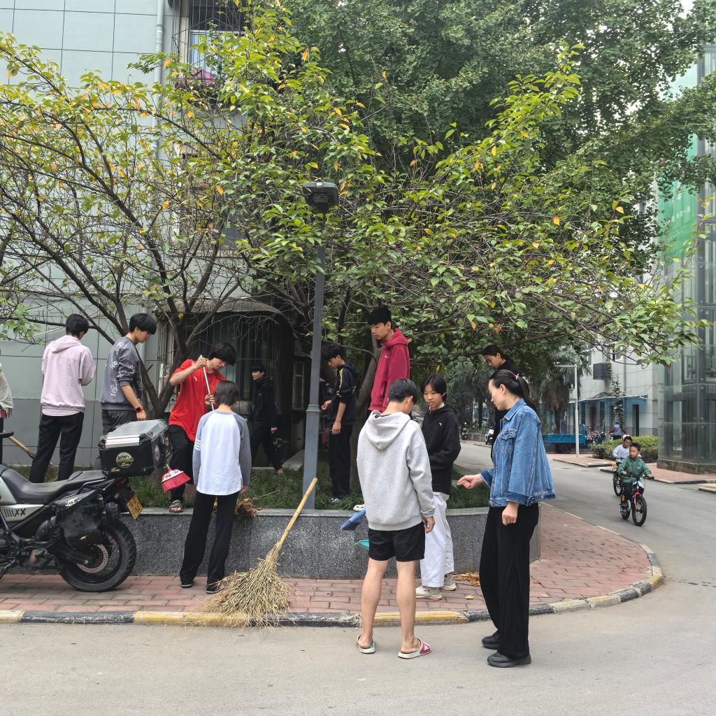 国庆期间,今年会跆拳道队学生在训练之余,自发组织学生30余名,在家属区开展义务劳动,清洁环境卫生,创造干净校园,庆祝建校70周年。