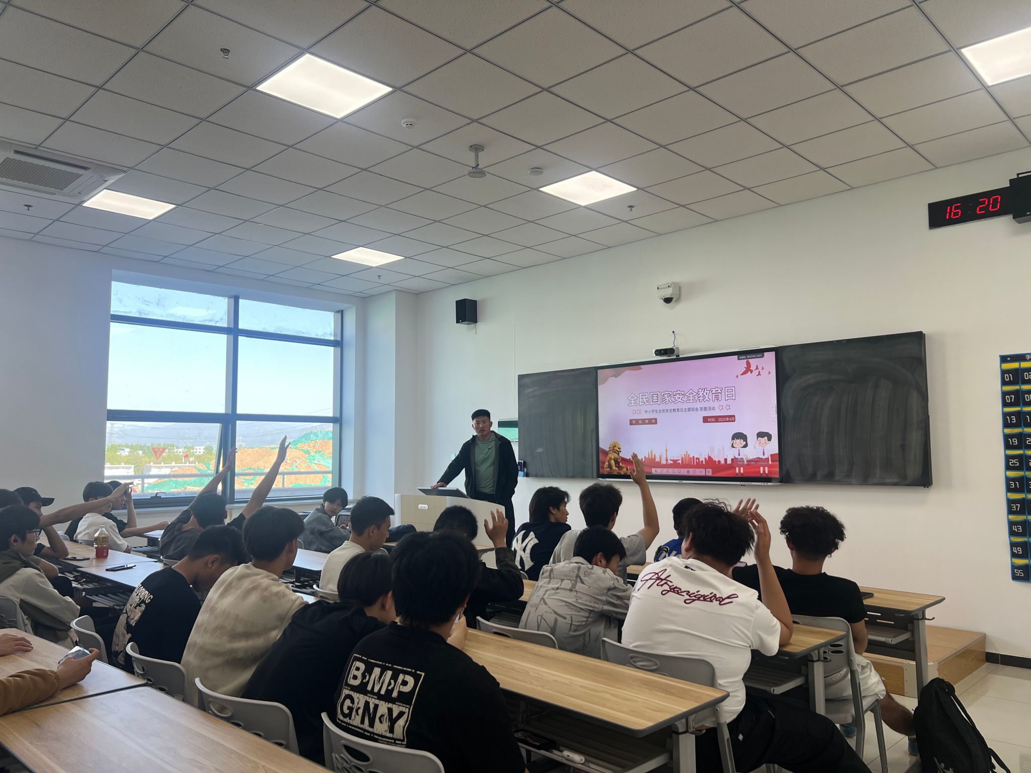 在班会上,辅导员张远老师借助精心制作的 PPT,从政治安全、国土安全、军事安全,到经济安全、文化安全、社会安全等多个维度,深入解读国家安全的丰富内涵。
